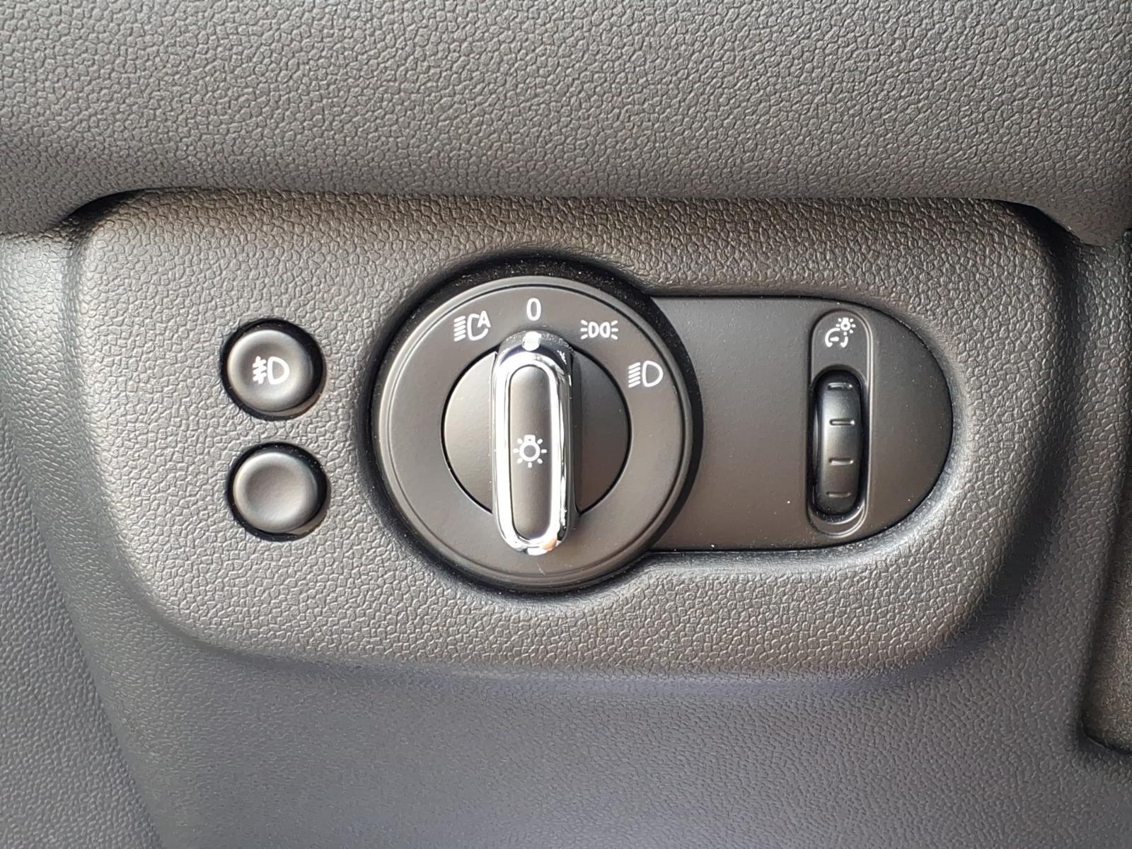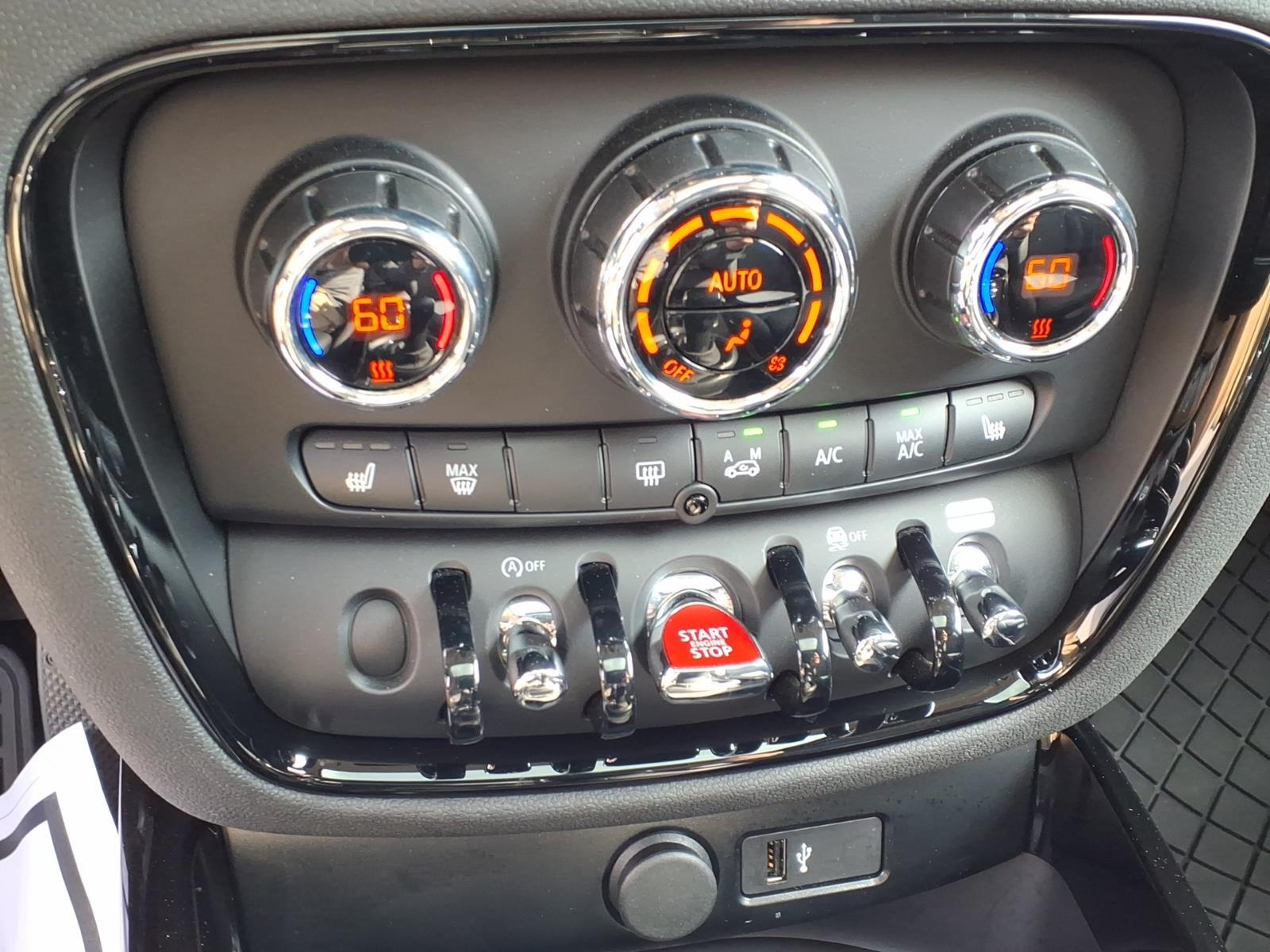 Dual front knee airbags, four-wheel disc brakes with anti-lock, electronic brake force distribution, standby brakes, cornering brake control, automatic self-drying brakes, hill assist, dynamic traction control with electronic differential lock control, dynamic stability control, side-impact door beams, central locking system, engine immobilizer, comfort keyless entry, daytime driving lights, automatic headlights, Bluetooth hands free phone system, and tire pressure monitoring system. Cooper S adds run-flat tires.