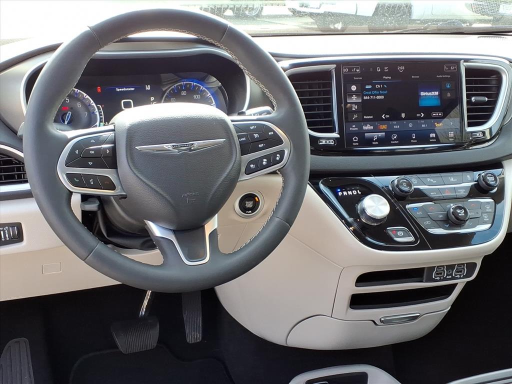 This Diamond Black Crystal Pearlcoat 2024 Chrysler Pacifica Touring L is a premium Local Trade-In featuring a Clean CARFAX and exceptional family utility! Powered by the dependable 3.6L V6 24V VVT engine and a smooth 9-speed automatic transmission, this FWD passenger van is designed to provide top-tier comfort, safety, and modern convenience for every journey. Premium Comfort & Versatility: The interior features Black Caprice Leatherette Bucket Seats and Chrysler's legendary Stow n Go seating system, allowing for effortless transitions between maximum passenger capacity and massive cargo space. Experience ultimate convenience with a Power Liftgate, Heated Front Seats, and a Heated Steering Wheel. This Touring L also includes Dual-Zone Automatic Climate Control and Rear Air Conditioning to ensure every passenger stays comfortable. Cutting-Edge Technology & Safety: Stay fully connected with the Uconnect 5 system featuring a massive 10.1-inch Touchscreen Display, Apple CarPlay, and Android Auto integration. Safety is a top priority with the ParkView Rear Back-Up Camera, Rain-Sensing Wipers, and Automatic High-beam Headlights. Dressed with 17-inch Aluminum Wheels and a sleek rear spoiler, this 2024 Pacifica is the gold standard for modern family travel. This 2024 Diamond Black Crystal Pearlcoat Chrysler Pacifica Touring L FWD is well equipped and includes these features and benefits: 10.1Touchscreen Display, 17x 7.0Aluminum Wheels, 3.25 Axle Ratio, 3rd row seats: split-bench, 4-Wheel Disc Brakes, 6 Speakers, ABS brakes, Air Conditioning, Alloy wheels, AM/FM radio: SiriusXM, Apple CarPlay, Apple CarPlay/Android Auto, Automatic temperature control, Black Seats, Brake assist, Bumpers: body-color, Caprice Leatherette Bucket Seats, Compass, Delay-off headlights, Disassociated Touchscreen Display, Driver door bin, Driver vanity mirror, Drivers Seat Mounted Armrest, Dual front impact airbags, Dual front side impact airbags, Electronic Stability Control, Four wheel independent suspension, Front anti-roll bar, Front Bucket Seats, Front dual zone A/C, Front fog lights, Front reading lights, Fully automatic headlights, Google Android Auto, GPS Antenna Input, Heated door mirrors, Heated front seats, Heated steering wheel, Illuminated entry, Integrated Active Noise Cancellation, Integrated Center Stack Radio, Knee airbag, Low tire pressure warning, Manufacturers Statement of Origin, Memory seat, Occupant sensing airbag, Outside temperature display, Overhead airbag, O