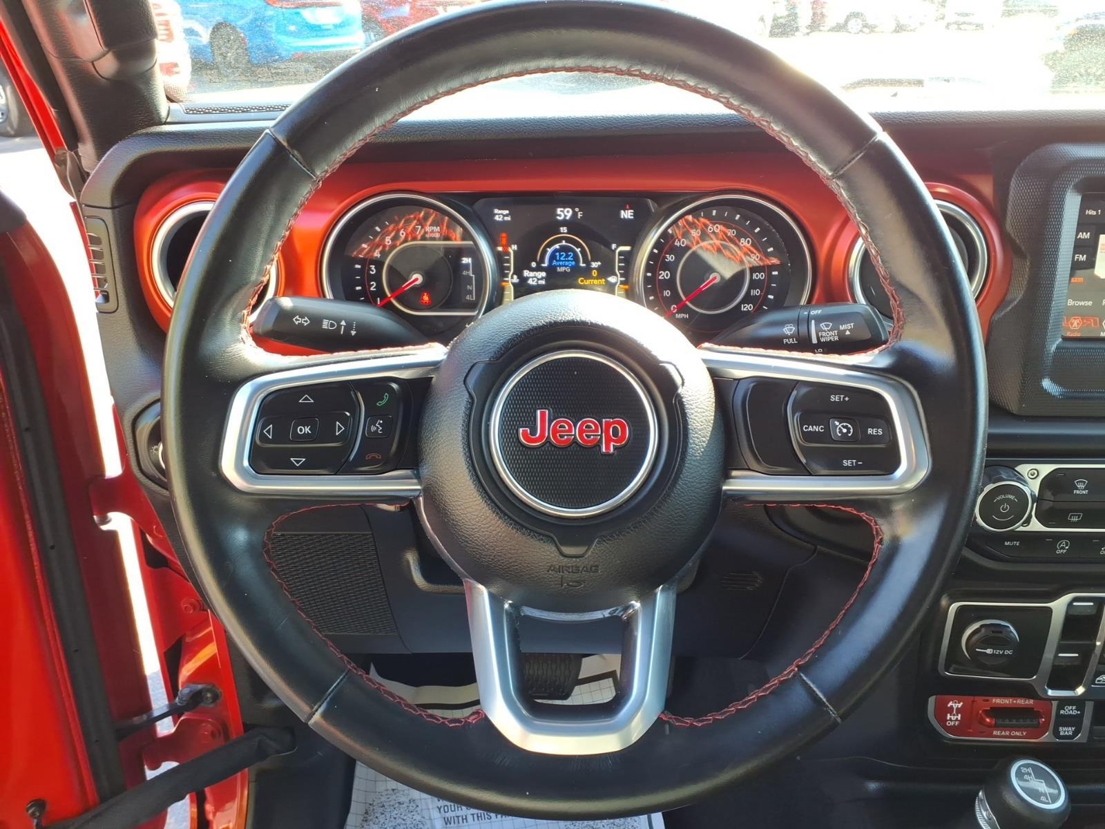 This Firecracker Red Clearcoat 2021 Jeep Wrangler Unlimited Rubicon 4WD is the ultimate off-road machine, now available as a Jeep Certified Pre-Owned vehicle! Being Certified means you receive a factory-backed 7-Year/100,000-Mile Powertrain Limited Warranty and a rigorous inspection for total peace of mind. Under the hood, this Rubicon features the efficient yet torquey 2.0L I4 DOHC DI Turbo engine paired with a smooth 8-speed automatic transmission. Legendary Off-Road Hardware: As a true Rubicon, this Jeep is equipped with the 4:1 Rock-Trac Heavy-Duty Part-Time 4WD System, Tru-Lok Front and Rear Locking Axles, and a Front Disconnecting Stabilizer Bar. The exterior features Body-Color Fender Flares, Red Tow Hooks, and 17-inch Machined Wheels with Black Pockets. For open-air freedom, this model is equipped with the upgraded Premium Black Sunrider Soft Top. Interior Tech & Comfort: Inside, youll find Premium Cloth Low-Back Bucket Seats and a cabin loaded with tech, including the Uconnect system with a 7-inch Display, Apple CarPlay, and Google Android Auto. Experience ultimate convenience with Automatic Temperature Control, Remote Keyless Entry, and a Universal Garage-Door Opener. With the ParkView Rear Back-Up Camera and Electronic Roll Mitigation, youre ready for any adventure, on or off the trail. This 2021 Firecracker Red Clearcoat Jeep Wrangler Unlimited Rubicon 4WD is well equipped and includes these features and benefits: 4-Wheel Disc Brakes, 4.10 Rear Axle Ratio, 8 Speakers, ABS brakes, Air Conditioning, Alloy wheels, AM/FM radio: SiriusXM, Apple CarPlay/Android Auto, Automatic temperature control, Aux Battery, Body Color Fender Flares, Brake assist, Compass, Delay-off headlights, Driver door bin, Driver vanity mirror, Dual front impact airbags, Dual front side impact airbags, Electronic Stability Control, Front anti-roll bar, Front Bucket Seats, Front Center Armrest w/Storage, Front dual zone A/C, Front fog lights, Front reading lights, Fully automatic headlights, Garage door transmitter, Heated door mirrors, Illuminated entry, Integrated roll-over protection, Leather steering wheel, Low tire pressure warning, MOPAR All-Weather Floor Mats (DISC), Non-Lock Fuel Cap w/o Discriminator, Occupant sensing airbag, Outside temperature display, Panic alarm, ParkView Rear Back-Up Camera, Passenger door bin, Passenger vanity mirror, Performance Suspension, Power door mirrors, Power steering, Power windows, Premium Black Sunrider Soft Top, Premium Cloth Low-Back