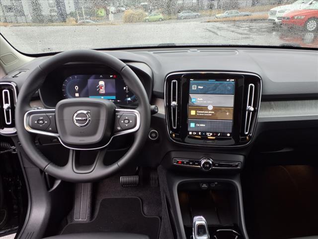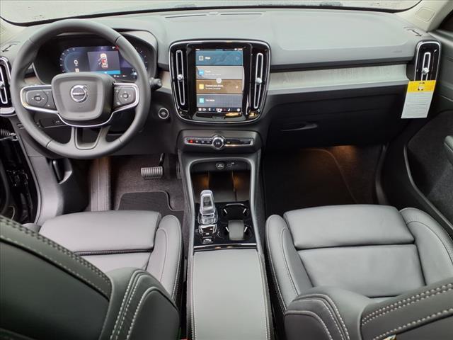 Onyx Black Metallic 2025 Volvo XC40 B5 Plus Dark Theme AWD Automatic with Geartronic 2.0L I4 Turbocharged DOHC 16V LEV3-ULEV70 4-Wheel Disc Brakes, 8 Speakers, ABS brakes, Air Conditioning, Alloy wheels, AM/FM radio: SiriusXM, Apple CarPlay, Auto High-beam Headlights, Auto-dimming door mirrors, Auto-dimming Rear-View mirror, Automatic temperature control, Brake assist, Bumpers: body-color, Delay-off headlights, Driver door bin, Driver vanity mirror, Dual front impact airbags, Dual front side impact airbags, Electronic Stability Control, Emergency communication system, Exterior Parking Camera Rear, Four wheel independent suspension, Front anti-roll bar, Front Bucket Seats, Front Center Armrest, Front dual zone A/C, Front fog lights, Front reading lights, Fully automatic headlights, Garage door transmitter: HomeLink, Heated door mirrors, Heated Front Seats, Heated front seats, Illuminated entry, Internet access capable: Digital Services Package w/ 4 Year Subscription, Knee airbag, Leather Seating Surfaces, Low tire pressure warning, Memory seat, Navigation system: Google Maps w/ 4 Year Subscription, Occupant sensing airbag, Outside temperature display, Overhead airbag, Overhead console, Panic alarm, Passenger door bin, Passenger vanity mirror, Power door mirrors, Power driver seat, Power Liftgate, Power moonroof, Power passenger seat, Power steering, Power windows, Radio data system, Radio: High Performance Sound System, Rain sensing wipers, Rear anti-roll bar, Rear fog lights, Rear reading lights, Rear seat center armrest, Rear window defroster, Rear window wiper, Remote keyless entry, Security system, Speed control, Speed-sensing steering, Split folding rear seat, Spoiler, Steering wheel mounted audio controls, Tachometer, Telescoping steering wheel, Tilt steering wheel, Traction control, Trip computer, Turn signal indicator mirrors, Variably intermittent wipers, Wheels: 195-Y Spoke Matte Graphite Alloy. Type your sentence here. 23/30 City/Highway MPG Our team is p