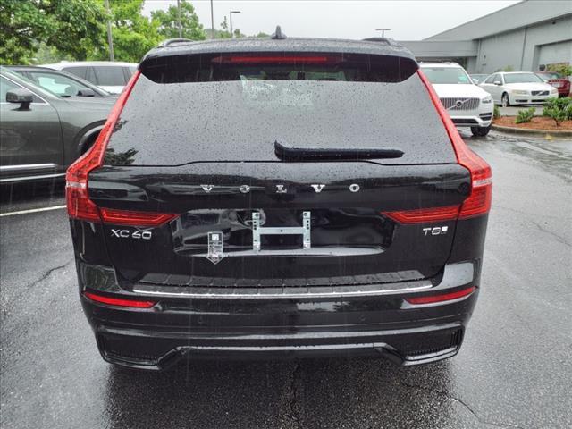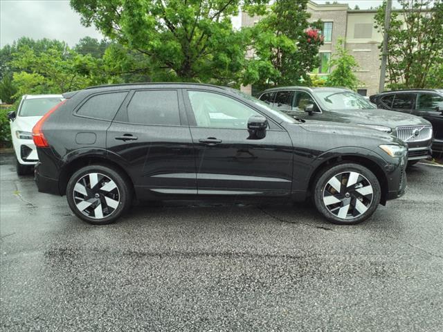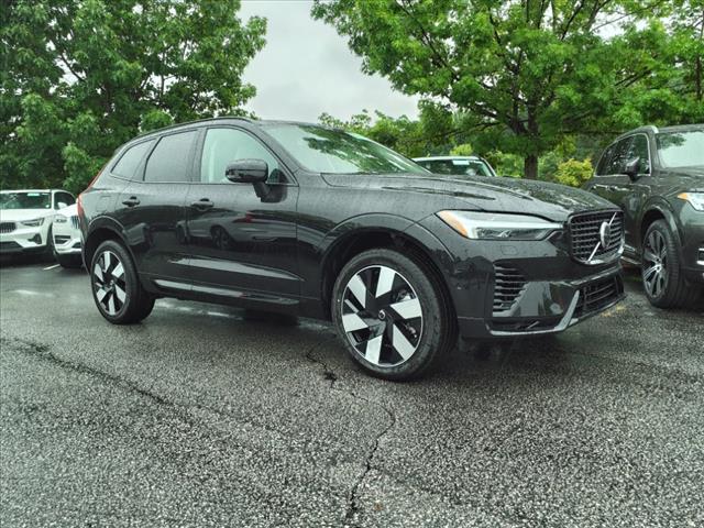 Onyx Black Metallic 2025 Volvo XC60 Plug-In Hybrid T8 Plus AWD Automatic with Geartronic 2.0L I4 Hybrid Turbocharged DOHC 16V LEV3-SULEV30 2.0L I4 Hybrid Turbocharged DOHC 16V LEV3-SULEV30, 11 Speakers, 4-Wheel Disc Brakes, ABS brakes, Air Conditioning, Alloy wheels, AM/FM radio: SiriusXM, Anti-whiplash front head restraints, Apple CarPlay, Auto High-beam Headlights, Auto-dimming door mirrors, Auto-dimming Rear-View mirror, Automatic temperature control, Brake assist, Bumpers: body-color, Delay-off headlights, Driver door bin, Driver vanity mirror, Dual front impact airbags, Dual front side impact airbags, Electronic Stability Control, Emergency communication system: Volvo Cars App w/4 Year Subscription, Exterior Parking Camera Rear, Four wheel independent suspension, Front anti-roll bar, Front Bucket Seats, Front Center Armrest, Front dual zone A/C, Front reading lights, Fully automatic headlights, Garage door transmitter: HomeLink, Heated door mirrors, Heated Front Seats, Heated front seats, Illuminated entry, Knee airbag, Leather Shift Knob, Leatherette Upholstery, Low tire pressure warning, Memory seat, Occupant sensing airbag, Outside temperature display, Overhead airbag, Panic alarm, Passenger door bin, Passenger vanity mirror, Power door mirrors, Power driver seat, Power Liftgate, Power moonroof, Power passenger seat, Power steering, Power windows, Radio data system, Radio: High Performance Audio System, Rain sensing wipers, Rear anti-roll bar, Rear fog lights, Rear reading lights, Rear seat center armrest, Rear window defroster, Rear window wiper, Remote keyless entry, Security system, Speed control, Split folding rear seat, Spoiler, Steering wheel mounted audio controls, Tachometer, Telescoping steering wheel, Tilt steering wheel, Traction control, Trip computer, Turn signal indicator mirrors, Variably intermittent wipers, Wheels: 195-Double Spoke Black Diamond Cut Alloy, 2.0L I4 Hybrid Turbocharged DOHC 16V LEV3-SULEV30. Type your sentence here. Our team