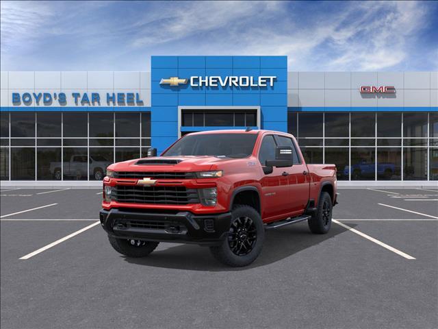 Welcome to Boyd�s Tar Heel Chevrolet GMC of Roxboro, NC! 10-Speed Automatic, 4WD, Black Cloth. Red Hot 2025 Chevrolet Silverado 2500HD Custom 4WD 10-Speed Automatic Duramax 6.6L V8 Turbodiesel Thank you for shopping at Boyd�s Tar Heel Chevrolet GMC. We sincerely appreciate the opportunity to assist you with your next vehicle purchase! Our sales team is dedicated to customer service that starts with an online shopping experience that is hassle-free and enjoyable. Please always feel welcome to visit us anytime at www.TarHeelChevy.com, or come by in person at 1700 Durham Rd. Roxboro, NC! We Sincerely Appreciate The Opportunity To Serve Your Automotive Needs! Thank You Again For Shopping With Boyds Tar Heel Chevrolet GMC! Price includes: $500 - Chevrolet Consumer Cash Program. Exp. 11/03/2025
