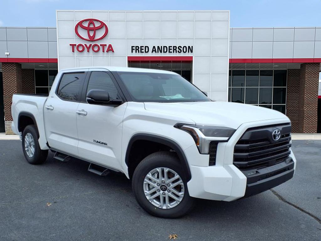Check out all these great options 18x 7.5J Alloy Wheels, 3.31 Axle Ratio, 4-Wheel Disc Brakes, 9 Speakers, ABS brakes, Air Conditioning, Alloy wheels, AM/FM Radio, AM/FM radio: SiriusXM, Apple CarPlay/Android Auto, Auto High-beam Headlights, Automatic temperature control, Brake assist, Bumpers: body-color, Delay-off headlights, Driver door bin, Driver vanity mirror, Dual front impact airbags, Dual front side impact airbags, Electronic Stability Control, Emergency communication system: Safety Connect (10-year trial), Exterior Parking Camera Rear, Fabric Seat Trim, Front anti-roll bar, Front Bucket Seats, Front Center Armrest, Front fog lights, Front reading lights, Front wheel independent suspension, Fully automatic headlights, Heated door mirrors, Illuminated entry, Knee airbag, Low tire pressure warning, Occupant sensing airbag, Outside temperature display, Overhead airbag, Overhead console, Panic alarm, Passenger door bin, Passenger vanity mirror, Power door mirrors, Power driver seat, Power steering, Power windows, Radio data system, Rear reading lights, Rear step bumper, Rear window defroster, Remote keyless entry, Security system, Speed control, Speed-sensing steering, Split folding rear seat, Steering wheel mounted audio controls, Tachometer, Telescoping steering wheel, Tilt steering wheel, Traction control, Trip computer, Variably intermittent wipers, and Voltmeter Fred Anderson Family Plan Sanford in NC When you purchase a new Toyota from Fred Anderson Toyota of Sanford, your new vehicle will come with a complimentary 3 day piece of mind guarantee, good at participating dealers. It will also include lifetime oil changes, loaner cars, car washes, and special loyalty discounts. In short, Fred Anderson Toyota of Sanford offers great prices, and has a special plan that will help you reduce the cost of your new Toyota. 4D CrewMax 2025 Toyota Tundra RWD SR5 Ice Cap 10-Speed Automatic 3.4L V6 Excludes dealer-installed options, tax, tag, registration and $799 admini