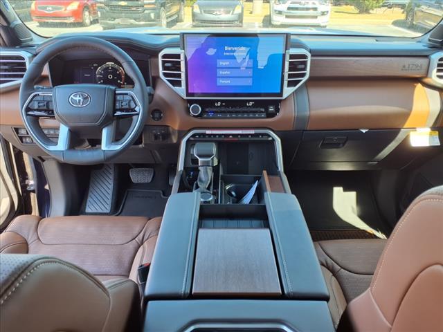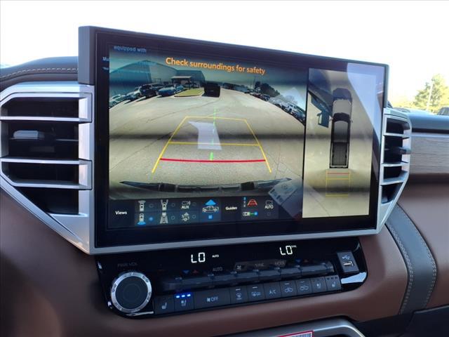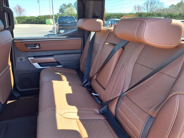 Check out all these great options 10-Way Pwr Adj Heated and Ventilated Front Seats, 12 Speakers, 3.31 Axle Ratio, 4-Wheel Disc Brakes, ABS brakes, Air Conditioning, Alloy wheels, AM/FM radio: SiriusXM, Apple CarPlay/Android Auto, Auto High-beam Headlights, Auto-dimming door mirrors, Auto-dimming Rear-View mirror, Automatic temperature control, Brake assist, Bumpers: body-color, Chrome Exhaust Tail Pipe & Diffuser, Delay-off headlights, Driver door bin, Driver vanity mirror, Dual front impact airbags, Dual front side impact airbags, Electronic Stability Control, Emergency communication system: Safety Connect (10-year trial), Exterior Parking Camera Rear, Front anti-roll bar, Front Bucket Seats, Front Center Armrest, Front dual zone A/C, Front fog lights, Front reading lights, Front wheel independent suspension, Fully automatic headlights, Garage door transmitter: HomeLink, Heated door mirrors, Heated front seats, Heated rear seats, Heated steering wheel, Illuminated entry, Knee airbag, Leather Shift Knob, Leather steering wheel, Low tire pressure warning, Memory seat, Navigation System, Occupant sensing airbag, Outside temperature display, Overhead airbag, Overhead console, Panic alarm, Passenger door bin, Passenger vanity mirror, Power door mirrors, Power driver seat, Power moonroof, Power passenger seat, Power steering, Power windows, Premium Leather Seat Trim, Radio data system, Radio: Audio Multimedia System, Rain sensing wipers, Rear reading lights, Rear seat center armrest, Rear step bumper, Rear window defroster, Remote keyless entry, Safety Connect, Security system, Speed control, Speed-sensing steering, Split folding rear seat, Steering wheel memory, Steering wheel mounted audio controls, Tachometer, Telescoping steering wheel, Tilt steering wheel, Traction control, Trip computer, Turn signal indicator mirrors, Variably intermittent wipers, Ventilated front seats, Ventilated rear seats, Voltmeter, and Wheels: 20Machined Finish Alloy Fred Anderson Family Plan Sanford in NC When you purchase a new Toyota from Fred Anderson Toyota of Sanford, your new vehicle will come with a complimentary 3 day piece of mind guarantee, good at participating dealers. It will also include lifetime oil changes, loaner cars, car washes, and special loyalty discounts. In short, Fred Anderson Toyota of Sanford offers great prices, and has a special plan that will help you reduce the cost of your new Toyota. 4D CrewMax 2025 Toyota Tundra 4WD 1794 Blueprint 10-Speed Automa