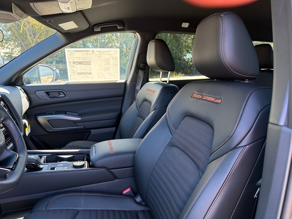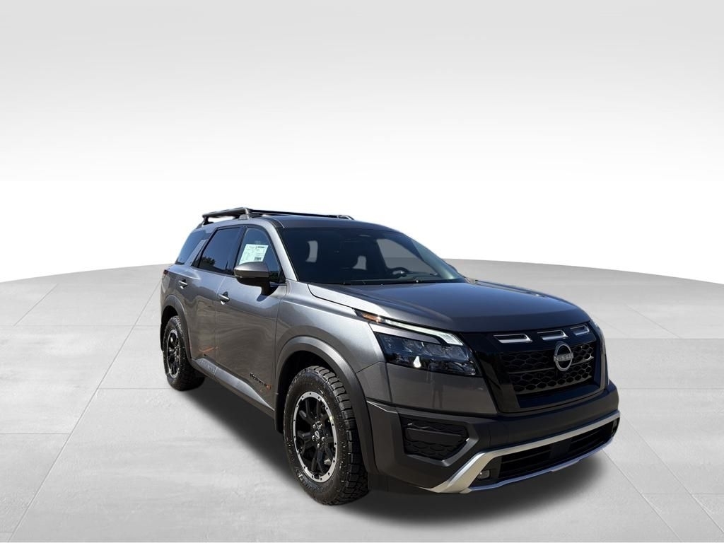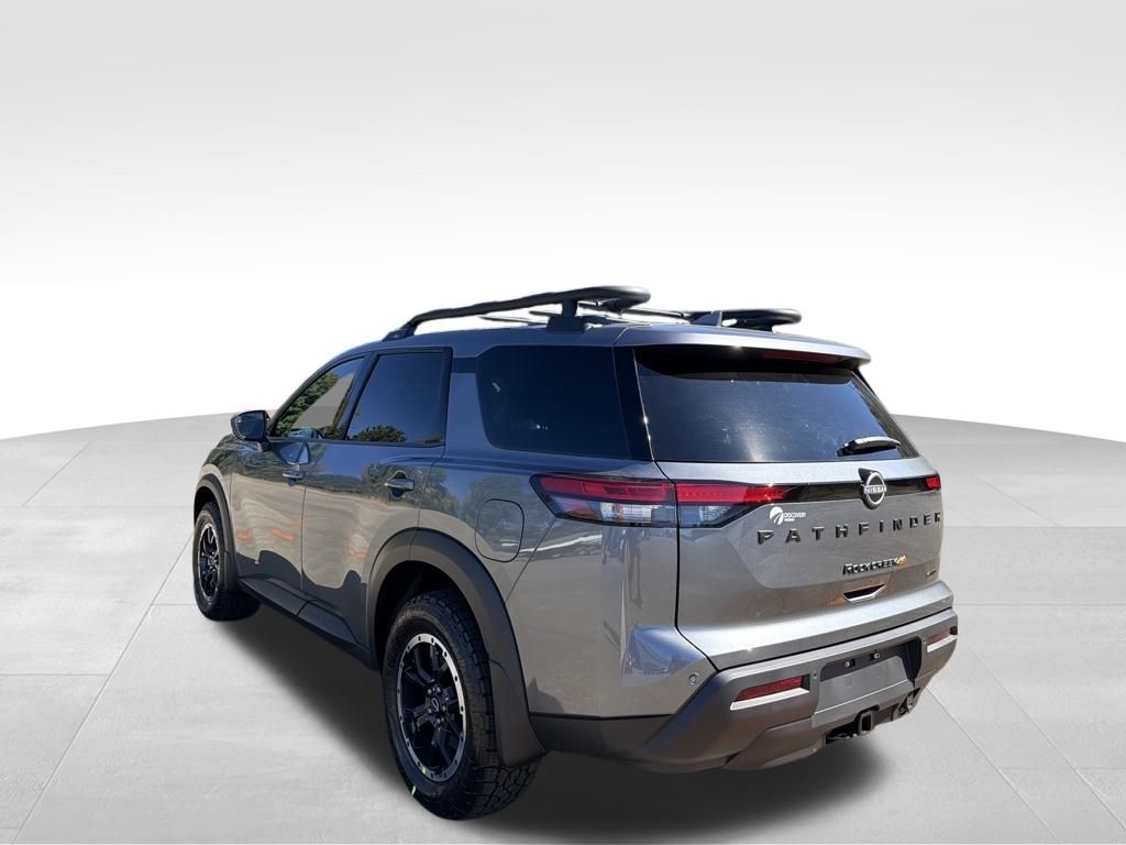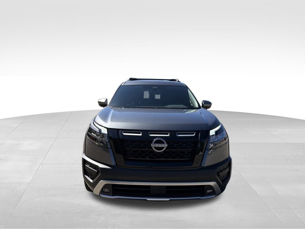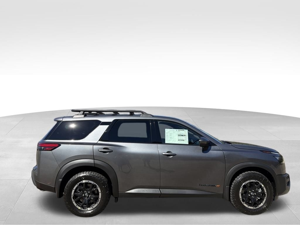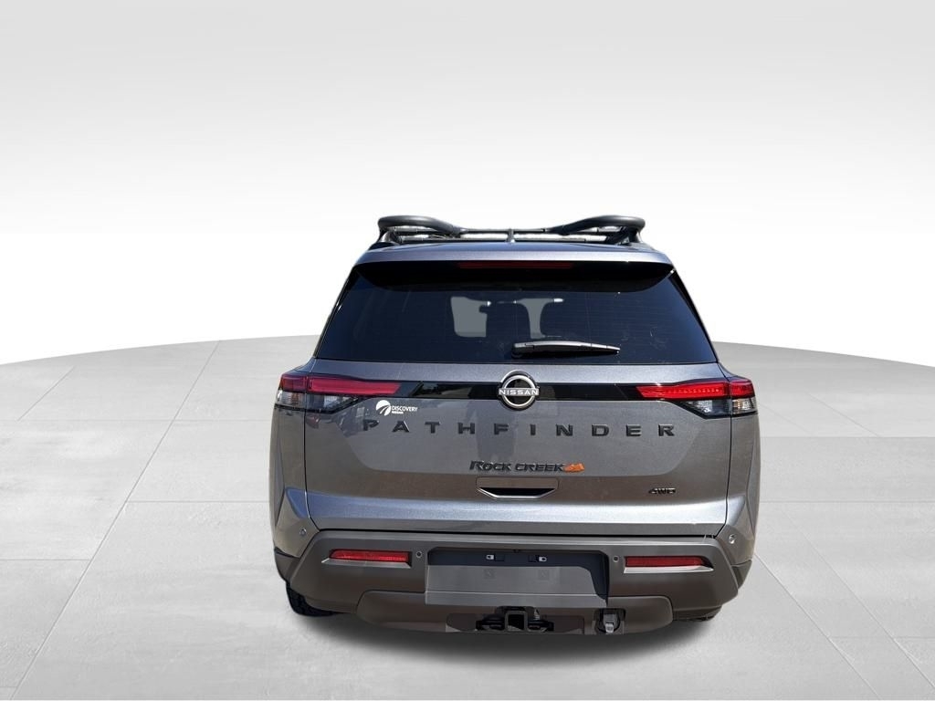 2025 Nissan Pathfinder Gun Metallic 3.5L V6 DOHC Rock Creek 4WD. Check out all these great options 4WD, 3rd row seats: bench, 4-Wheel Disc Brakes, 6 Speakers, ABS brakes, Air Conditioning, Alloy wheels, AM/FM radio: SiriusXM, Auto High-beam Headlights, Automatic temperature control, Brake assist, Delay-off headlights, Driver door bin, Driver vanity mirror, Dual front impact airbags, Dual front side impact airbags, Electronic Stability Control, Emergency communication system, Four wheel independent suspension, Front anti-roll bar, Front Bucket Seats, Front Center Armrest, Front dual zone A/C, Front fog lights, Front reading lights, Fully automatic headlights, Heated door mirrors, Heated Front Bucket Seats, Heated front seats, Illuminated entry, Knee airbag, Leather steering wheel, Leatherette-Appointed Seating Surfaces, Low tire pressure warning, NissanConnect featuring Apple CarPlay and Android Auto, Occupant sensing airbag, Outside temperature display, Overhead airbag, Overhead console, Panic alarm, Passenger door bin, Passenger vanity mirror, Power door mirrors, Power driver seat, Power Liftgate, Power steering, Power windows, Radio data system, Radio: AM/FM Audio System w/NissanConnect, Rear air conditioning, Rear anti-roll bar, Rear Parking Sensors, Rear reading lights, Rear side impact airbag, Rear window defroster, Rear window wiper, Reclining 3rd row seat, Remote keyless entry, Rock Creek AS Floor Liners & Cargo Area Protector, Roof rack, Security system, Speed control, Speed-sensing steering, Split folding rear seat, Spoiler, Steering wheel mounted audio controls, Tachometer, Telescoping steering wheel, Tilt steering wheel, Traction control, Trip computer, Turn signal indicator mirrors, Variably intermittent wipers, and Wheels: 18x 8J Machined Alloy w/Black Finish. Price includes: $5000 - Nissan Customer Cash. Exp. 11/03/2025