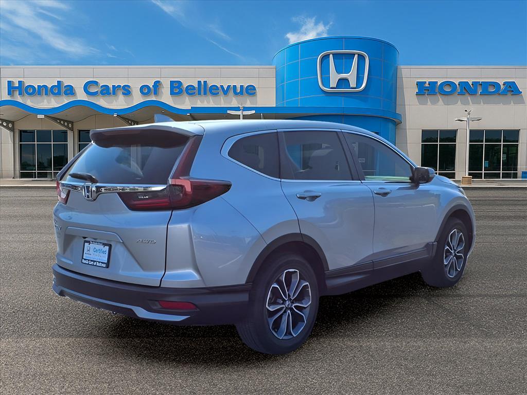 Contact Honda Cars Of Bellevue today for information on dozens of vehicles like this 2021 Honda CR-V EX. A rigorous inspection for safety and reliability makes this vehicle Certified Pre-Owned. The Honda CR-V is the benchmark all other SUVs strive to meet. With exceptional power, towing and handling, this SUV can handle anything thrown at it. If you are looking for a vehicle with great styling, options and incredible fuel economy, look no further than this quality automobile. No matter the weather conditions or terrain, this Lunar Silver Metallic AWD Honda CR-V EX handles with an elegant confidence. Fine interior appointments complement this vehicles unprecedented performance. This Honda CR-V EX is in great condition both inside and out. No abnormal wear and tear. This extraordinary find is a once-in-a-lifetime opportunity for someone who understands automotive magic.
