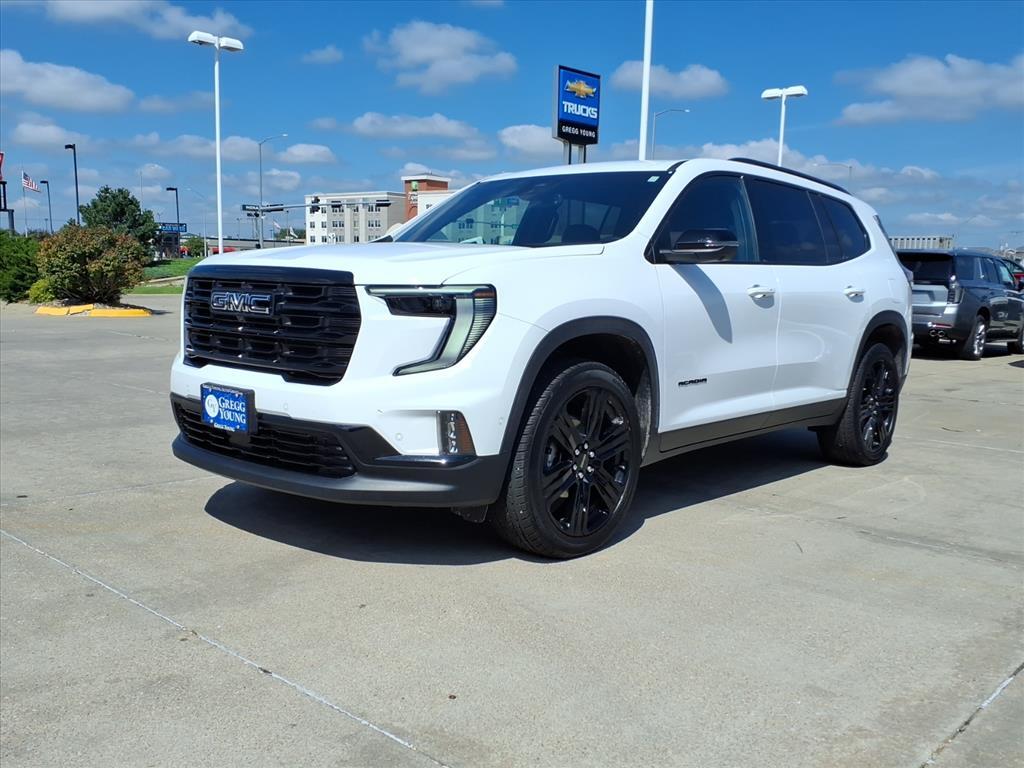 Upscale details help our 2025 GMC Acadia Elevation Black Edition AWD with Premium Package rise above the crowd in Summit White! Powered by a TurboCharged 2.5 Liter 4 Cylinder serving up 328hp to an 8 Speed Automatic transmission with ample strength to tow and go. This bold All Wheel Drive SUV also achieves nearly 28mpg on the highway and welcomes eye-catching Black Edition upgrades. They add a performance suspension, 22-inch black wheels, and black accents to our Acadias LED lighting, a hands-free liftgate, dual bright exhaust tips, roof rails, and heated power mirrors. Our Elevation cabin complements that sophisticated exterior with heated CoreTec power front seats, comfortable second/third rows, a heated sport steering wheel, tri-zone automatic climate control, keyless entry, remote start, and pushbutton ignition. The intelligent infotainment system boasts a 15-inch touchscreen, 11-inch driver display, Google Built-in, wireless Apple CarPlay/Android Auto, WiFi compatibility, a full-color navigation system, Bluetooth, and a Bose premium sound system. Theres ample room for gear, groceries, and more in the back! GMC takes your safety seriously, supplying adaptive cruise control, automatic braking, a digital rearview mirror, an HD backup camera, lane-keeping assistance, blind-spot monitoring, rear cross-traffic alert, a rear-seat reminder, and other smart technologies. Theres just more to love in our mighty Acadia Elevation. Save this Page and Call for Availability. We Know You Will Enjoy Your Test Drive Towards Ownership!