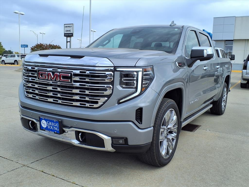Our 2025 GMC Sierra 1500 Denali Crew Cab 4X4 with the Reserve Pack advances truck luxury in Sterling Metallic! Powered by a 6.2 Liter EcoTec3 V8 generating 420hp for a 10 Speed Automatic transmission. A premium suspension with adaptive ride control helps you comfortably cruise from town to trail, and this Four Wheel Drive truck scores nearly 19mpg on the highway. Signature Sierra style comes into the picture with a distinctive grille, LED lighting, a MultiPro tailgate, a spray-on bedliner, and our Reservwe Pack for bold 22-inch wheels, a power sunroof, and power side steps. Lavishly equipped, our Denali cabin treats owners to deluxe features like heated/ventilated leather power front and heated rear seats, a heated-wrapped power steering wheel, dual-zone automatic climate control, remote start, keyless access/ignition, and a digital dashboard. The sophisticated setup boasts a 13.4-inch touchscreen and 12.3-inch driver display, enabling wireless Android Auto/Apple CarPlay, a full-color navigation system, WiFi compatibility, Google Built-In, wireless charging, Bluetooth, voice control, and a Bose sound system. Youll also find impressive GMC safety systems from our intelligent Reserve Pack, which adds a head-up display and digital rearview mirror to front/rear auto braking, HD surround vision with a bed-view camera, adaptive cruise control, trailer-capable blind-spot monitoring, lane-keeping assistance, and more. Crafted to exceed expectations, our Sierra 1500 Denali is an excellent choice! Save this Page and Call for Availability. We Know You Will Enjoy Your Test Drive Towards Ownership! Price includes: $2750 - Buick & GMC Consumer Cash Program. Exp. 09/30/2025 $500 - GM Bonus Cash. Exp. 09/30/2025
