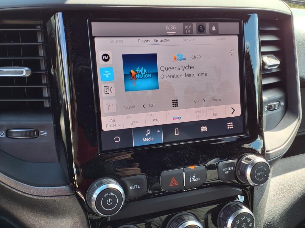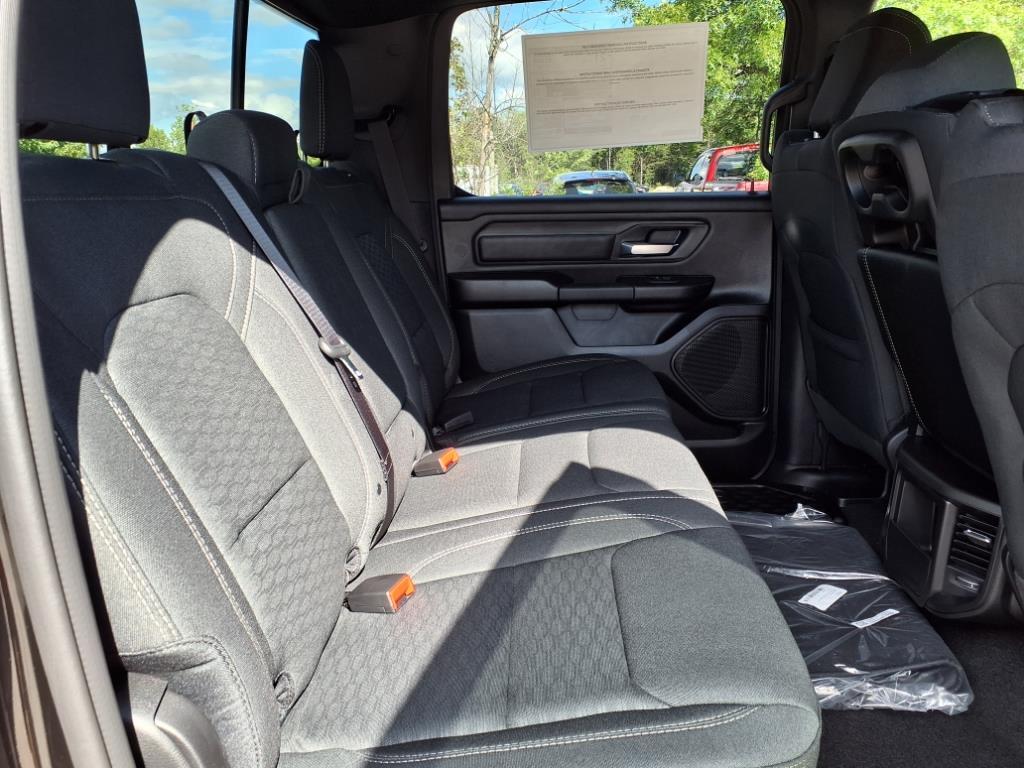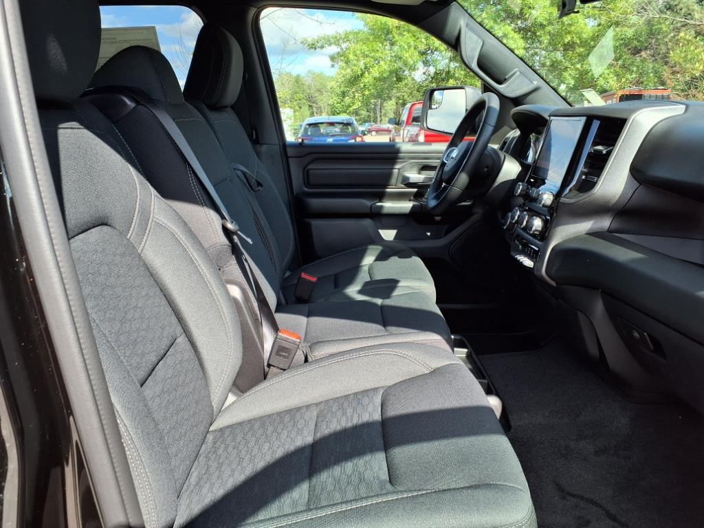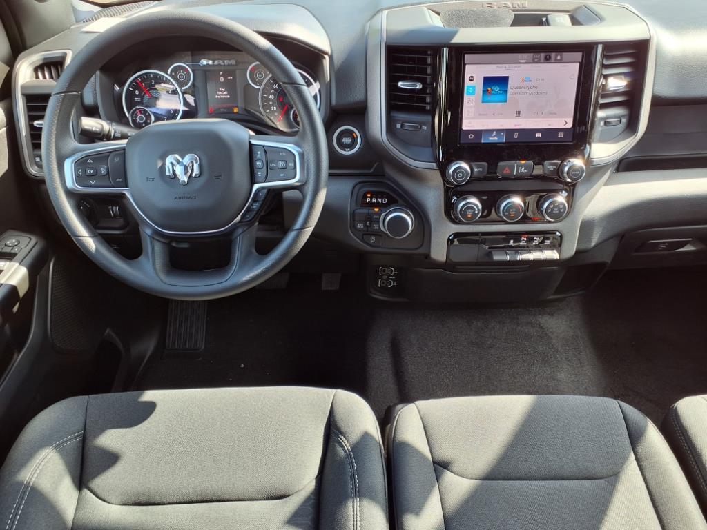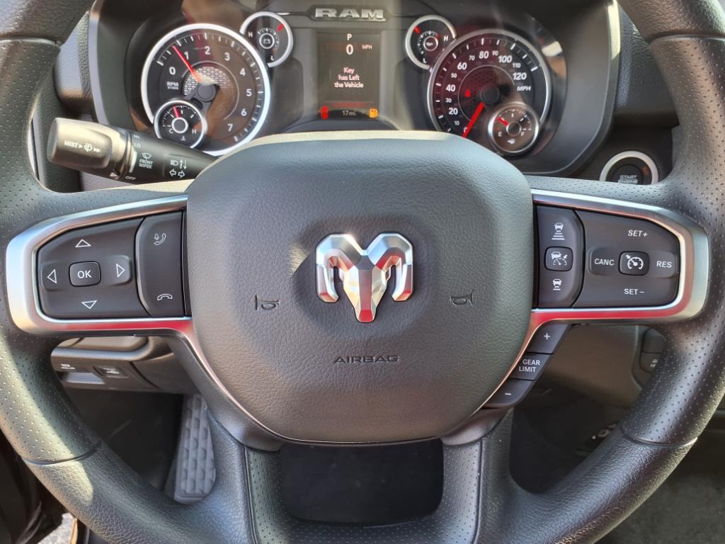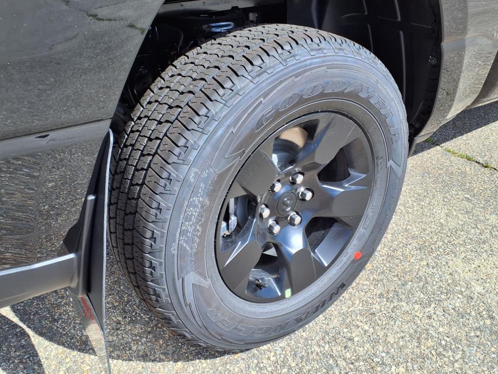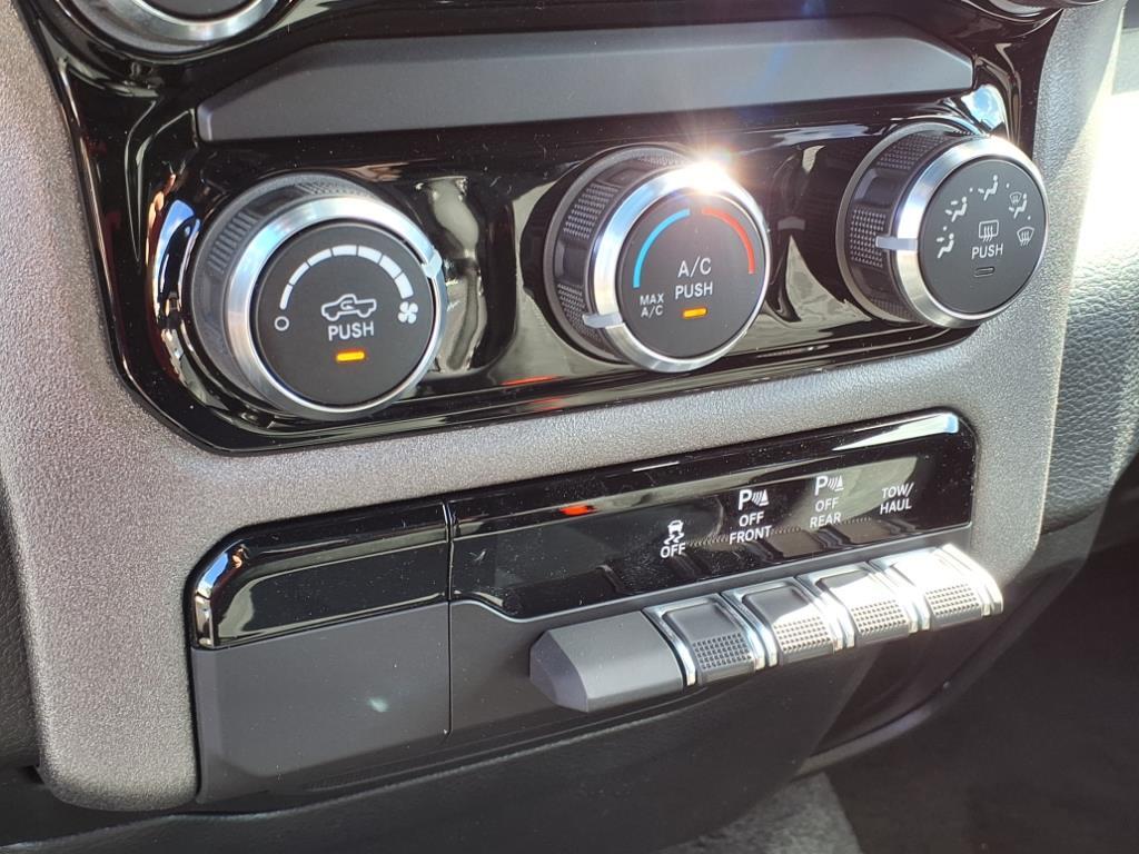 Vehicle equipped with: Bed Utility Group (400W Inverter, MOPAR 4 Adjustable Cargo Tie-Down Hooks, MOPAR Deployable Bed Step, MOPAR Spray In Bedliner, and Pick-Up Box Lighting), Night Edition (Anti-Spin Differential Rear Axle, Black Interior Accents, Body Color Front Bumper, Body Color Rear Bumper w/Step Pads, Front LED Fog Lamps, Grille Black Surround Black Mesh, and Wheels: 18 x 8.0 Black Painted Aluminum), Quick Order Package 23A Tradesman, Tradesman Level 1 Equipment Group (2nd Row In Floor Storage Bins, 3 Rear Seat Head Restraints, 4 Way Front Headrests, 40/20/40 Split Bench Seat, Cloth Bench Seat, Front & Rear Floor Mats, Front Center Seat Cushion Storage, Front Seat Back Map Pockets, Manual Adjust 4-Way Driver Seat, Manual Adjust 4-Way Front Passenger Seat, Rear 60/40 Folding Seat, Rear Power Sliding Window, Seat Parts Module II, and SiriusXM Satellite Radio), 4-Wheel Disc Brakes, 6 Speakers, ABS brakes, Air Conditioning, AM/FM radio, Apple CarPlay/Android Auto, Auto High-beam Headlights, Black Exterior Mirrors, Brake assist, Compass, Delay-off headlights, Driver door bin, Dual front impact airbags, Dual front side impact airbags, Electronic Stability Control, Exterior Mirrors w/Heating Element, Front anti-roll bar, Front Center Armrest, Front License Plate Bracket, Front reading lights, Front wheel independent suspension, Fully automatic headlights, Heated door mirrors, Heavy Duty Vinyl 40/20/40 Split Bench Seat, Illuminated entry, Low tire pressure warning, Manual Folding Exterior Mirrors, Occupant sensing airbag, Outside temperature display, Overhead airbag, Overhead console, Panic alarm, ParkView Rear Back-Up Camera, Passenger door bin, Passenger vanity mirror, Power door mirrors, Power steering, Power windows, Radio data system, Radio: Uconnect 5 W w/8.4 Display, RAM Grille Badge - Black, Rear anti-roll bar, Rear step bumper, Remote keyless entry, Speed control, Tachometer, Telescoping steering wheel, Tilt steering wheel, Traction control, Variably interm