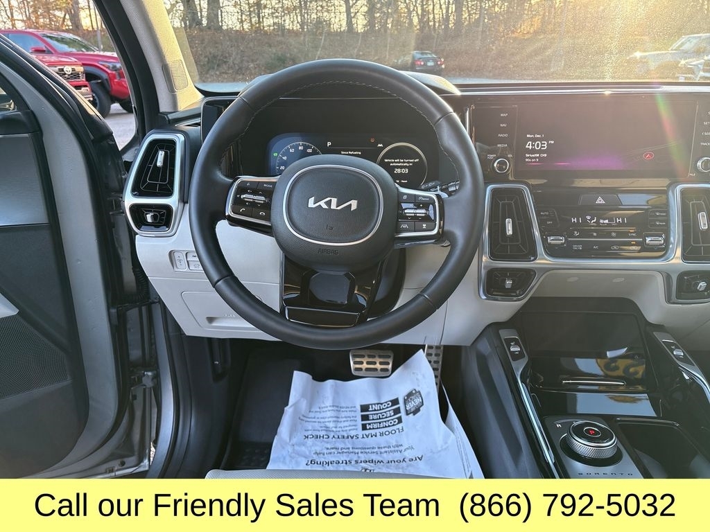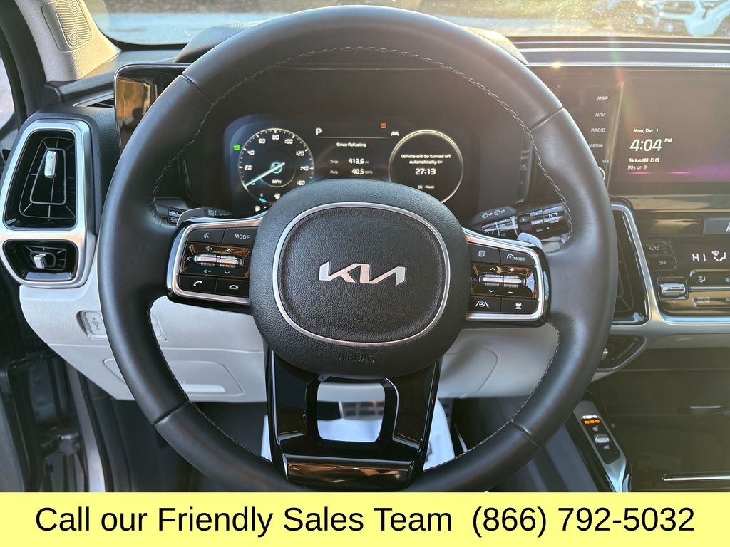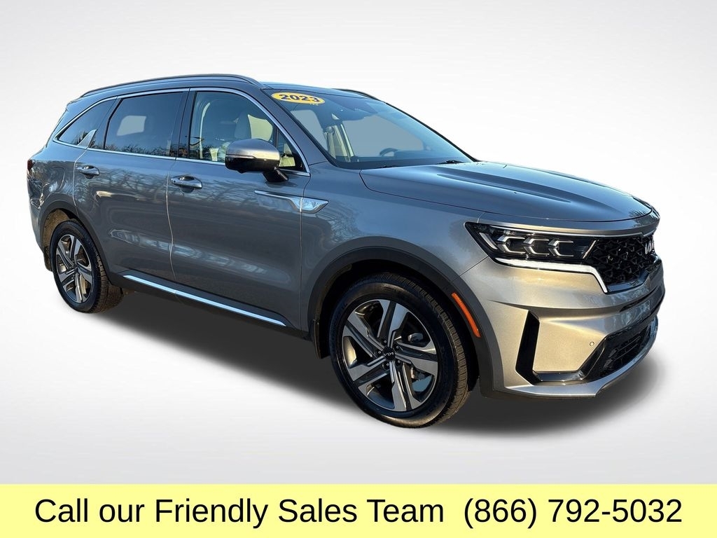 2023 Kia Sorento Plug-In Hybrid SX Prestige Premium 3-Row Luxury, Exceptional Efficiency, and Advanced Hybrid Power The 2023 Kia Sorento Plug-In Hybrid SX Prestige delivers upscale comfort, impressive electric-hybrid efficiency, and family-ready versatility in one of the most advanced midsize SUVs on the road. Powered by a 1.6L turbocharged hybrid engine paired with a 66.9-kW electric motor, it produces 261 combined horsepower and offers up to 32 miles of all-electric drivingperfect for daily commutes with little to no fuel consumption. With standard AWD, a smooth 6-speed automatic transmission, and strong driving dynamics, the Sorento PHEV delivers confident performance in all conditions. Inside, the SX Prestige trim provides true luxury with quilted Nappa leather seats, heated and ventilated front seats, heated second-row captains chairs, a 12.3-inch digital instrument cluster, a 10.25-inch navigation touchscreen, Bose premium audio, and a panoramic sunroof. The cabin is spacious and thoughtfully designed, featuring flexible 3-row seating, smart storage, and convenient USB ports for every passenger. Safety is fully equipped with Kia Drive Wise driver-assist technology, including Forward Collision Avoidance, Blind-Spot View Monitor, Highway Driving Assist, Smart Cruise Control with Stop & Go, Lane Keeping Assist, Surround View Monitor, and Parking Distance Warningproviding exceptional confidence and visibility. With outstanding electric range, premium styling, and advanced tech throughout, the 2023 Kia Sorento Plug-In Hybrid SX Prestige is one of the most efficient and luxurious 3-row SUVs available today., 1.6L I4 DGI Hybrid Turbocharged DOHC 16V LEV3-ULEV70. At McGee Toyota Of Epping we want you to know that all our vehicles are priced at a competitive value position to the market. We use an independent 3rd party software to research internet listings on all vehicles in the market so we can ensure that our prices are the most competitive out there. We do this simply so people choose us when they start searching for their next car. CARFAX One-Owner. Clean CARFAX. 2023 Kia Sorento Plug-In Hybrid SX Prestige 4D Sport Utility Steel Gray AWD 6-Speed Automatic 1.6L I4 DGI Hybrid Turbocharged DOHC 16V LEV3-ULEV70 McGee Toyota is a Family-Owned Business and we enjoy assisting all of our guests buying their next vehicle!