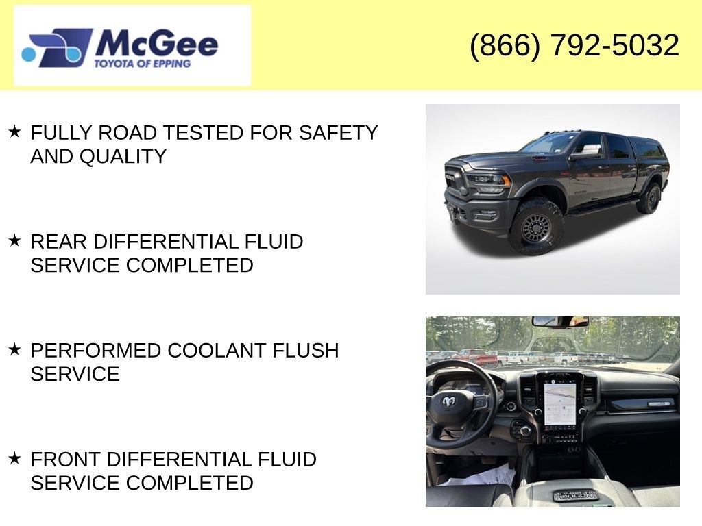 CLEAN CARFAX, EXCELLENT COLOR COMBINATION, ONE OWNER, NEEDS NOTHING TO PASS STATE INSPECTION, RECENT TRADE IN, BRAND NEW CABIN AIR FILTER, BRAND NEW ENGINE AIR FILTER, FRESH ENGINE OIL & FILTER, INSTALLED BOTH FRONT WIPER BLADES, PERFORMED BRAKE FLUID SERVICE, FULLY ROAD TESTED FOR SAFETY AND QUALITY, REAR DIFFERENTIAL FLUID SERVICE COMPLETED, PERFORMED COOLANT FLUSH SERVICE, FRONT DIFFERENTIAL FLUID SERVICE COMPLETED, FRONT BRAKES ROTORS AND PADS REPLACED 07/17/2025 AT DODGE DEALERSHIP, TIRES ARE EXCELLENT MEASURING 11/32-12/32!, $1,201.61 WAS SPENT FOR MECHANICAL UPDATES, ALONG WITH WEAR & TEAR ITEMS BEING REPLACED IF REQUIRED. BUY WITH COMPLETE CONFIDENCE AT MCGEE TOYOTA OF EPPING!. At McGee Toyota Of Epping we want you to know that all our vehicles are priced at a competitive value position to the market. We use an independent 3rd party software to research internet listings on all vehicles in the market so we can ensure that our prices are the most competitive out there. We do this simply so people choose us when they start searching for their next car. CARFAX One-Owner. Clean CARFAX. 2022 Ram 2500 Power Wagon 4D Crew Cab Granite Crystal Metallic Clearcoat 4WD 8-Speed Automatic 6.4L V8 McGee Toyota is a Family-Owned Business and we enjoy assisting all of our guests buying their next vehicle!