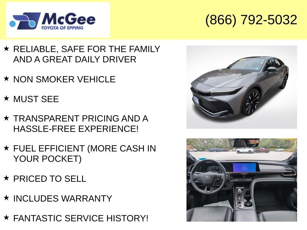 Recent Arrival! RELIABLE, SAFE FOR THE FAMILY AND A GREAT DAILY DRIVER, NON SMOKER VEHICLE, MUST SEE, TRANSPARENT PRICING AND A HASSLE-FREE EXPERIENCE!, FUEL EFFICIENT (MORE CASH IN YOUR POCKET), PRICED TO SELL, INCLUDES WARRANTY, FANTASTIC SERVICE HISTORY!, CLEAN CARFAX, EXCELLENT COLOR COMBINATION, LOCAL TRADE, ONE OWNER, BOUGHT, SERVICED AND TRADED AT MCGEE TOYOTA OF EPPING, NEEDS NOTHING TO PASS STATE INSPECTION, FACTORY MAINTENANCE UP TO DATE. At McGee Toyota Of Epping we want you to know that all our vehicles are priced at a competitive value position to the market. We use an independent 3rd party software to research internet listings on all vehicles in the market so we can ensure that our prices are the most competitive out there. We do this simply so people choose us when they start searching for their next car. CARFAX One-Owner. 2024 Toyota Crown Platinum 4D Sedan Heavy Metal AWD 6-Speed Automatic 2.4L 4-Cylinder McGee Toyota is a Family-Owned Business and we enjoy assisting all of our guests buying their next vehicle!