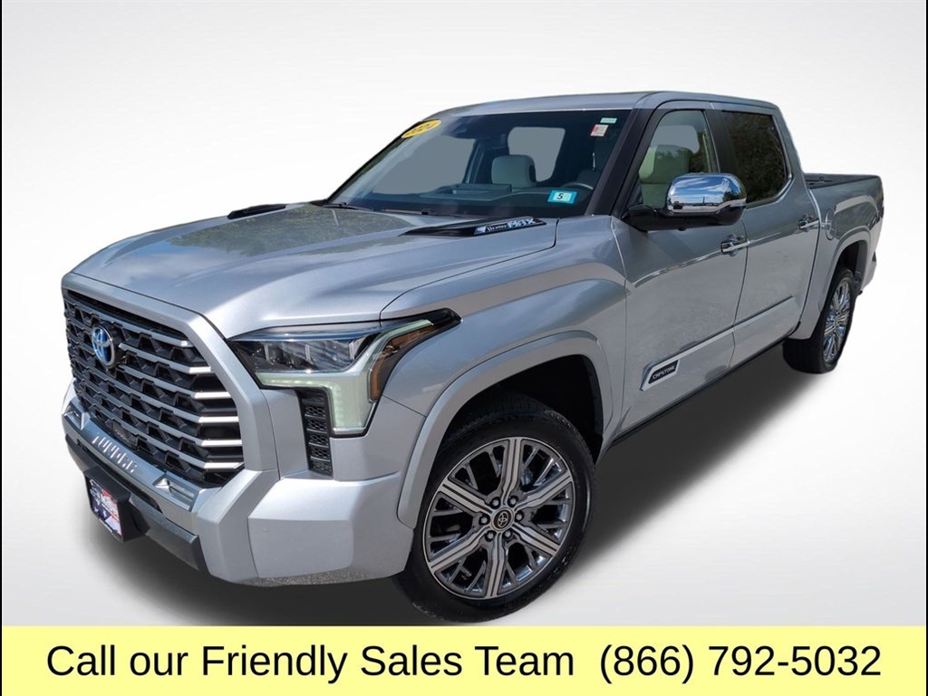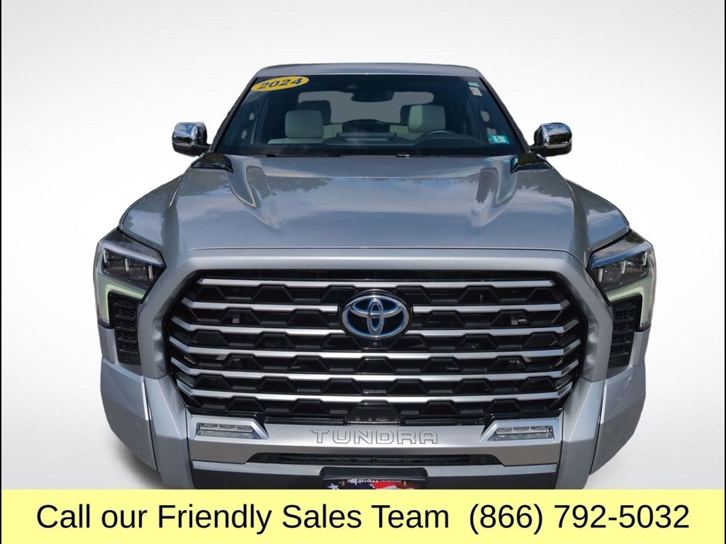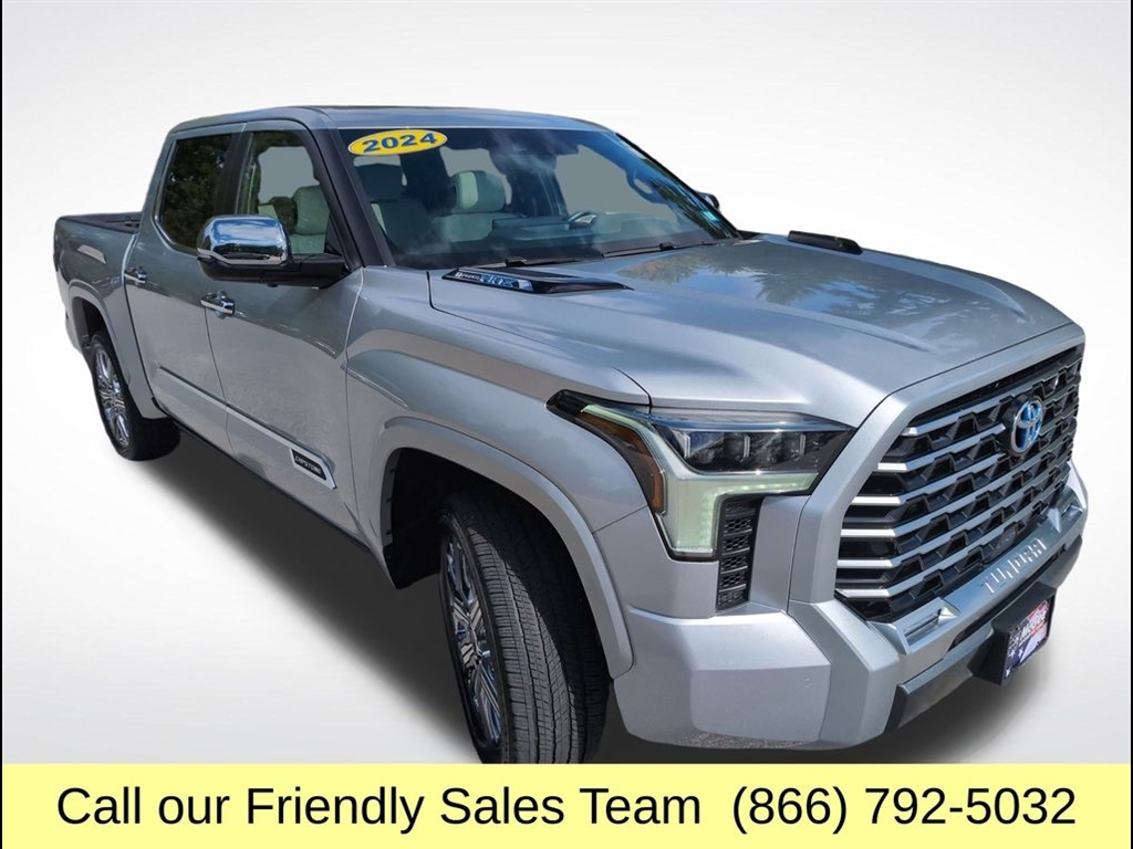 BRAND NEW CABIN AIR FILTER, FRESH ENGINE OIL & FILTER, INSTALLED BOTH FRONT WIPER BLADES, ROTATED & BALANCED ALL TIRES, TIRES ARE PRACTICALLY NEW MEASURING 8/32 IN THE FRONT AND 9/32 IN THE REAR., FRONT & REAR BRAKES MEASURE 9MM (EXCELLENT), $986.82 WAS SPENT ON CERTIFICATION!, SAVE THOUSANDS OFF A NEW ONE AND HAVE A BETTER FACTORY WARRANTY. ORIGINAL MSRP $80,944.00!, 3.4L V6. At McGee Toyota Of Epping we want you to know that all our vehicles are priced at a competitive value position to the market. We use an independent 3rd party software to research internet listings on all vehicles in the market so we can ensure that our prices are the most competitive out there. We do this simply so people choose us when they start searching for their next car. CARFAX One-Owner. 2024 Toyota Tundra Hybrid Capstone 4D Crew Cab Celestial Silver Metallic 4WD 10-Speed Automatic 3.4L V6 McGee Toyota is a Family-Owned Business and we enjoy assisting all of our guests buying their next vehicle!