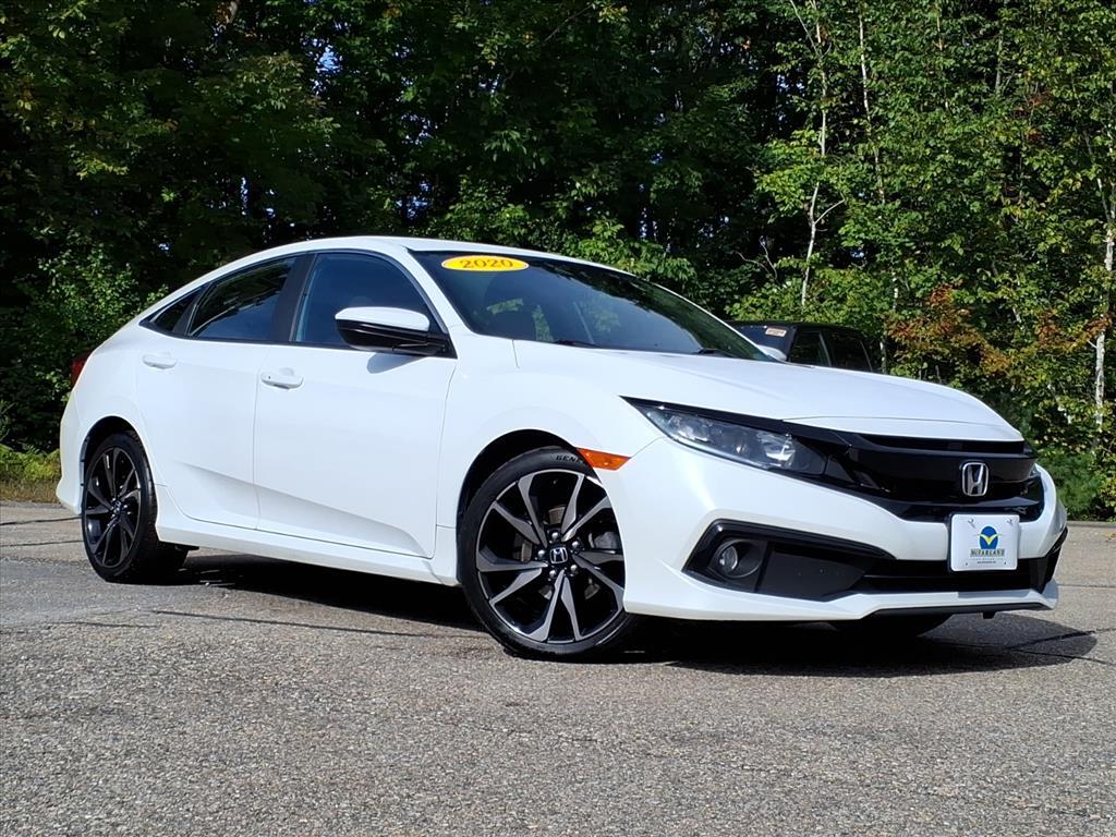 Recent Arrival! Black Cloth. White 2020 Honda Civic Sport FWD CVT 2.0L I4 DOHC 16V i-VTEC 29/37 City/Highway MPG At the end of the day, what we want most is to see you happy in your new car. We figure it doesnt matter how nicely youre treated if you just cant find the car you want. The good news is that there are two dealerships in our family, making for one of the largest inventories in New Hampshire. With a selection like ours, were very likely to see that happy face. Fully Loaded isnt optional; its a standard of how we operate. From our accommodating test drives to our innovative pre-owned exchange policy and value pricing on every vehicle and full day Saturday service to long-term automotive pampering youve always dreamed of, at McFarland Ford of Rochester youll be glad you chose THE REAL DEAL.