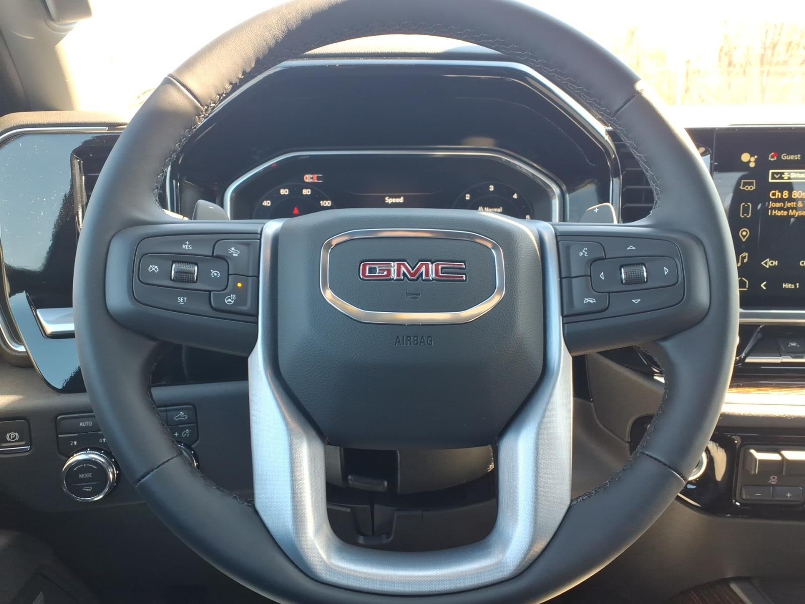 Heated Leather Seats, Sunroof, Navigation, Remote Engine Start, Onboard Communications System, 4x4, Trailer Hitch, SEAT, UP-LEVEL REAR WITH STORAGE PACK... SUNROOF, POWER. Elevation trim, Sterling Metallic exterior and Jet Black interior KEY FEATURES INCLUDE4x4, Heated Driver Seat, Onboard Communications System, Trailer Hitch, Remote Engine Start. GMC Elevation with Sterling Metallic exterior and Jet Black interior features a 8 Cylinder Engine with 310 HP at 5600 RPM*. OPTION PACKAGESELEVATION PREMIUM PACKAGE includes (PDQ) Preferred Package, (H0Y) Jet Black Leather interior, (SNR) Up-level Rear with Storage Package seat, (PED) Sierra Safety Plus Package, (RIA) All Weather Floormats, LPO and, (CGN) spray-on bedliner, LPO, 22 (55.9CM) HIGH GLOSS BLACK WHEELS LPO wheels will come with 4 steel 22 wheels from the factory with alignment specs set to 22 LPO wheel selected (dealer-installed), PREFERRED PACKAGE includes (UG1) Universal Home Remote, (A48) rear sliding power window, (PZ8) Hitch View, (UET) In-Vehicle Trailering App and (KSG) Adaptive Cruise Control (Includes (B1J) rear wheelhouse liners, (UQA) Bose Premium Audio System. ENGINE, 5.3L ECOTEC3 V8 (355 hp [265 kW] @ 5600 rpm, 383 lb-ft of torque [518 Nm] @ 4100 rpm); featuring Dynamic Fuel Management, SIERRA SAFETY PLUS PACKAGE includes (UD5) Front and Rear Park Assist, (UFB) Rear Cross Traffic Braking, (UKK) Rear Pedestrian Alert, (TRG) Trailer Camera Provisions, (UKV) Trailer Side Blind Zone Alert and (UV2) HD Surround Vision (Includes (U12) Perimeter lighting and (DP6) high gloss Black mirror caps. SUNROOF, POWER, LPO, BLACK TUBULAR ASSIST STEPS, 6 RECTANGULAR (dealer-installed), SEATS, FRONT BUCKET with center console (Includes (D07) center console and (K4C) Wireless charging. TAILGATE, GMC MULTIPRO TAILGATE with six functional load/access features, 3 YEARS SIRIUSXM SiriusXM Extended Service subscription will stop at the end of the applicable subscription period unless you decide to continue service. Plan is non-transferable and non-refundable. Service subject to the SiriusXM Customer Agreement and Privacy Policy, visit siriusxm.coManual Transmissionerms to see complete terms and how to cancel which includes online methods or calling 1-866-635-2349. Some services, content and features are subject to device capabilities, an active data connection enabled in the vehicle and location availability. All fees, content and features are subject to change. Content varies b