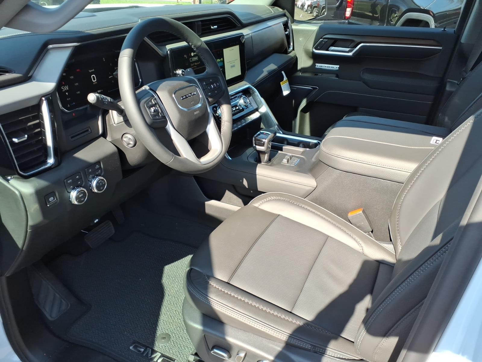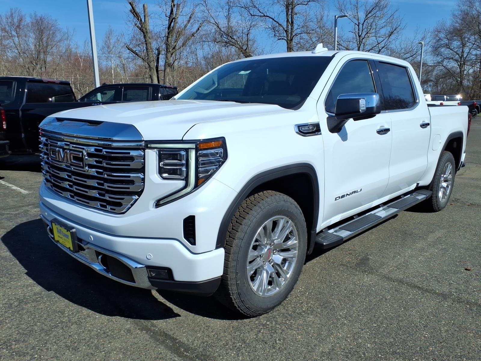 Heated/Cooled Leather Seats, Nav System, Heated Rear Seat, 4x4, Aluminum Wheels, Hitch, 3 YEARS SIRIUSXM, TRANSMISSION, 10-SPEED AUTOMATIC WITH... Bed Liner. Glacier White Tricoat exterior and Jet Black interior, Denali trim. KEY FEATURES INCLUDELeather Seats, 4x4, Heated Driver Seat, Heated Rear Seat, Cooled Driver Seat. GMC Denali with Glacier White Tricoat exterior and Jet Black interior features a 8 Cylinder Engine with 355 HP at 5600 RPM*. OPTION PACKAGES3 YEARS SIRIUSXM SiriusXM Extended Service subscription will stop at the end of the applicable subscription period unless you decide to continue service. Plan is non-transferable and non-refundable. Service subject to the SiriusXM Customer Agreement and Privacy Policy, visit siriusxm.coManual Transmissionerms to see complete terms and how to cancel which includes online methods or calling 1-866-635-2349. Some services, content and features are subject to device capabilities, an active data connection enabled in the vehicle and location availability. All fees, content and features are subject to change. Content varies by subscription plan. SiriusXM and related logos are trademarks of Sirius XM Radio Inc. and its respective subsidiaries.), AUDIO SYSTEM, 13.4 DIAGONAL PREMIUM GMC INFOTAINMENT SYSTEM WITH GOOGLE BUILT IN APPS SUCH AS NAVIGATION AND VOICE ASSISTANCE, INCLUDES COLOR TOUCH-SCREEN, MULTI-TOUCH DISPLAY, AM/FM STEREO Bluetooth streaming audio for music and most phones; featuring wireless Android Auto and Apple CarPlay capability for compatible phones (STD), ENGINE, 5.3L ECOTEC3 V8 (355 hp [265 kW] @ 5600 rpm, 383 lb-ft of torque [518 Nm] @ 4100 rpm); featuring Dynamic Fuel Management (STD), TRANSMISSION, 10-SPEED AUTOMATIC WITH ELECTRONIC PRECISION SHIFT, ELECTRONICALLY CONTROLLED with overdrive, and tow/haul mode and steering column paddle shifters. Includes Cruise Grade Braking and Powertrain Grade Braking (STD). Horsepower calculations based on trim engine configuration. Please confirm the accuracy of the included equipment by calling us prior to purchase.