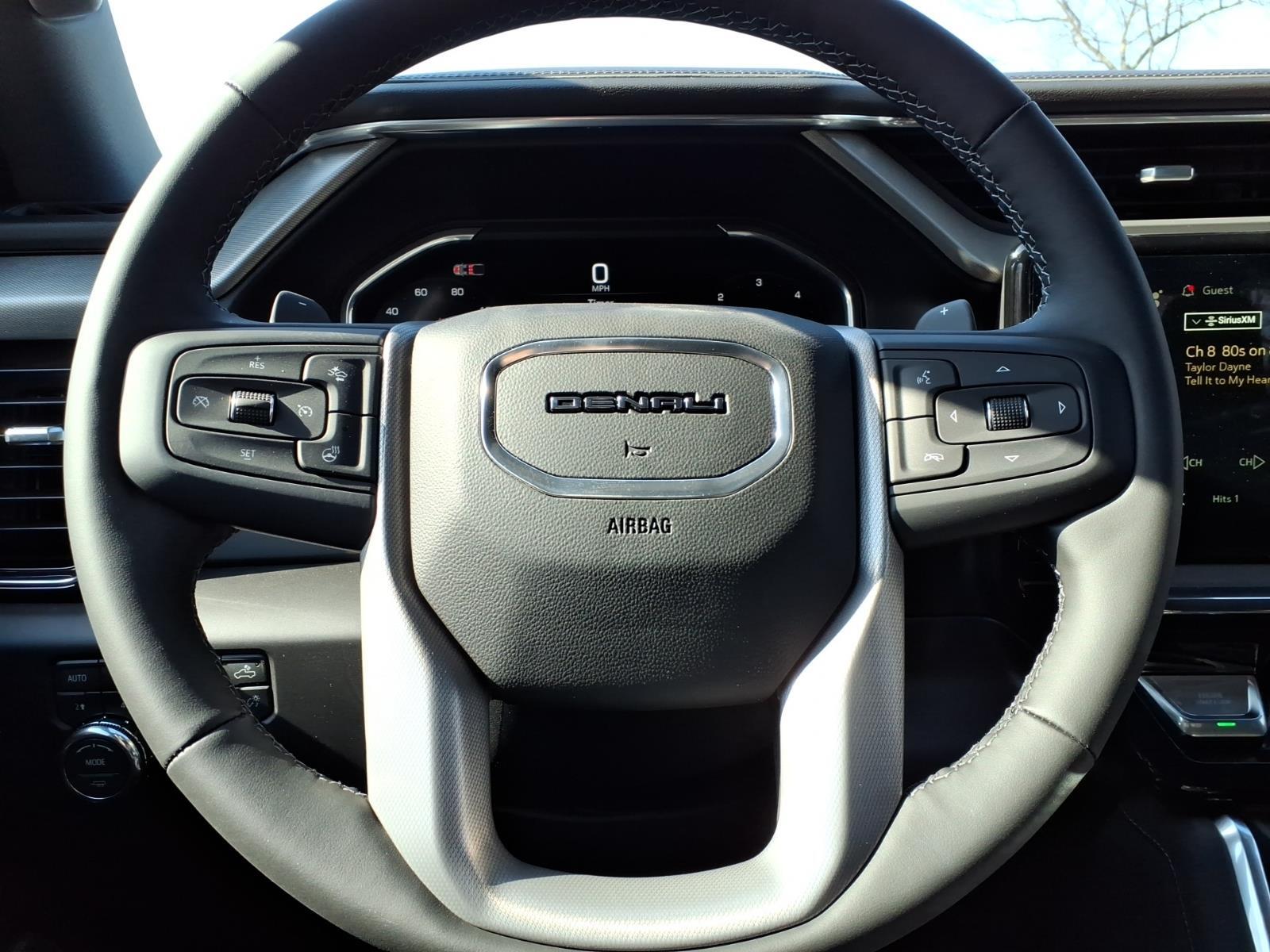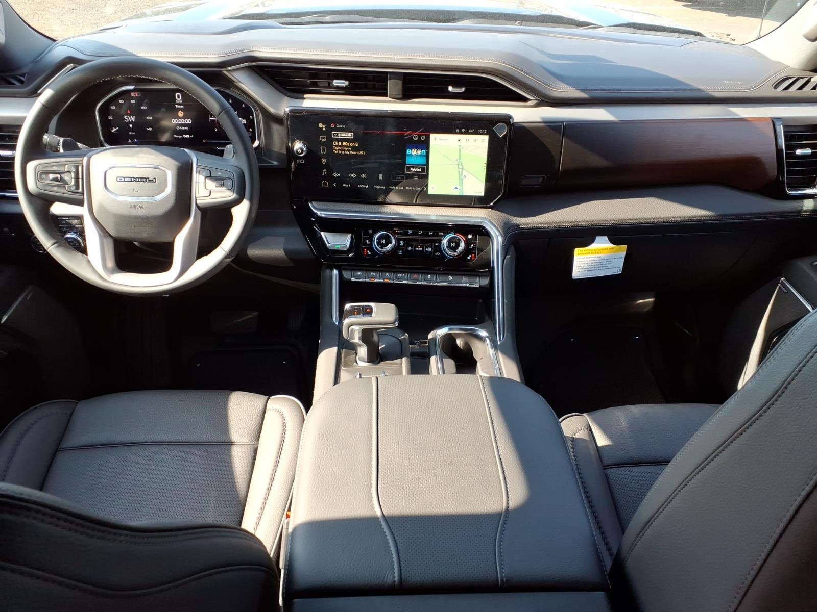 Heated Leather Seats, Navigation, Moonroof, Heated Rear Seat, 4x4, Trailer Hitch, LPO, 22 (55.9CM) HIGH GLOSS BLACK WH... SUNROOF, POWER, Bed Liner. Onyx Black exterior and Jet Black interior, Denali trim. EPA 26 MPG Hwy/22 MPG City! KEY FEATURES INCLUDELeather Seats, 4x4, Heated Driver Seat, Heated Rear Seat, Cooled Driver Seat GMC Denali with Onyx Black exterior and Jet Black interior features a Straight 6 Cylinder Engine with 305 HP at 3750 RPM*. OPTION PACKAGESLPO, 22 (55.9CM) HIGH GLOSS BLACK WHEELS LPO wheels will come with 4 steel 22 wheels from the factory with alignment specs set to 22 LPO wheel selected (dealer-installed), SUNROOF, POWER, ENGINE, DURAMAX 3.0L TURBO-DIESEL I6 (305 hp [227 kW] @ 3750 rpm, 495 lb-ft of torque [671 Nm] @ 2750 rpm) (Includes (KW5) 220-amp alternator and (K05) engine block heater.), AUDIO SYSTEM, 13.4 DIAGONAL PREMIUM GMC INFOTAINMENT SYSTEM WITH GOOGLE BUILT IN APPS SUCH AS NAVIGATION AND VOICE ASSISTANCE, INCLUDES COLOR TOUCH-SCREEN, MULTI-TOUCH DISPLAY, AM/FM STEREO Bluetooth streaming audio for music and most phones; featuring wireless Android Auto and Apple CarPlay capability for compatible phones (STD), TRANSMISSION, 10-SPEED AUTOMATIC WITH ELECTRONIC PRECISION SHIFT, ELECTRONICALLY CONTROLLED with overdrive, tow/haul mode and steering column paddle shifters. Includes Cruise Grade Braking and Powertrain Grade Braking. Horsepower calculations based on trim engine configuration. Fuel economy calculations based on original manufacturer data for trim engine configuration. Please confirm the accuracy of the included equipment by calling us prior to purchase.