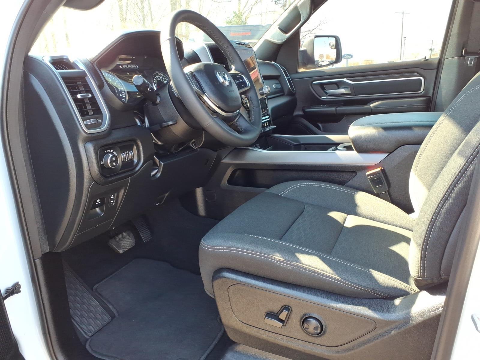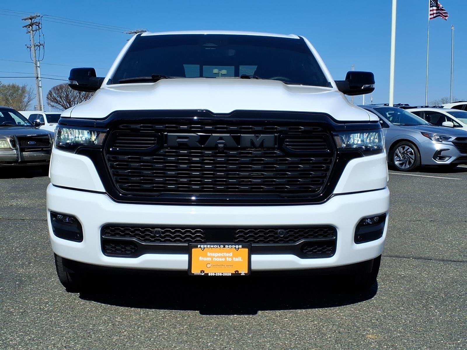 Used 2025 Ram 1500 Big Horn Crew Cab 4x4 in Bright White Clear-Coat with Black interior. Equipped with a 3.0L I6 Hurricane SO Twin Turbo engine and 8-speed automatic transmission, this full-size pickup delivers strong everyday performance with 4x4 capability. Sticker highlights include the Night Edition, Big Horn Level 2 Equipment Group, Uconnect 5 Nav with 12-inch touchscreen, heated front seats, heated steering wheel, power tailgate release, trailer brake controller, wireless charging pad, and 20-inch painted-clad wheels.Hurricane SO Twin Turbo engine8-speed automatic4x4Night EditionBig Horn Level 2 Equipment Group12-inch Uconnect 5 Nav touchscreenHeated front seatsHeated steering wheelTrailer brake controller20-inch wheelsAvailable for shoppers near Jackson, Farmingdale, and Colts Neck looking for a used Ram 1500 with modern tech and strong truck capability.