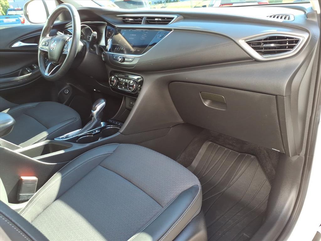 CARFAX One-Owner.2022 Buick Encore GX Select AWD 9-Speed Automatic White Frost Tricoat Hands-Free Power Liftgate Package (Hands Free Power Liftgate), Preferred Equipment Group 1SD (Heated Driver & Front Passenger Seats), Safety Package II (Lane Change Alert w/Side Blind Zone Alert and Rear Cross Traffic Alert), Sport Touring Package (18 Aluminum Wheels, Body Color Rocker Moldings, Body-Color Bodyside Moldings, Custom Grille w/Red Accents, Red Front & Rear Bumper Protective Molding, Sport Front Bumper w/Red Accents, Sport Rear Bumper w/Red Accents, and Sport Touring Badge), 18 Machined Aluminum Wheels, 2 USB Ports w/Auxiliary Input Jack, 2-Way Power Driver Lumbar Control, 3.17 Final Drive Axle Ratio, 4-Way Manual Passenger Seat Adjuster, 4-Wheel Disc Brakes, 6 Speakers, 8-Way Power Driver Seat Adjuster, ABS brakes, Air Conditioning, All-Weather Floor Liners (LPO), Alloy wheels, AM/FM radio: SiriusXM, Auto High-beam Headlights, Automatic temperature control, Brake assist, Bumpers: body-color, Cloth w/Leatherette Seat Trim, Compass, Delay-off headlights, Driver door bin, Driver vanity mirror, Dual front impact airbags, Dual front side impact airbags, Electronic Stability Control, Emergency communication system: OnStar and Buick connected services capable, Enhanced Performance 6-Speaker System, Front anti-roll bar, Front Bucket Seats, Front Center Armrest, Front dual zone A/C, Front fog lights, Front License Plate Bracket, Front reading lights, Front wheel independent suspension, Fully automatic headlights, Heated door mirrors, Heated front seats, Illuminated entry, Knee airbag, Low tire pressure warning, Not Equipped w/Driver & Fr Passenger Heated Seats, Occupant sensing airbag, Outside temperature display, Overhead airbag, Overhead console, Panic alarm, Passenger door bin, Passenger vanity mirror, Power door mirrors, Power driver seat, Power steering, Power windows, Radio data system, Radio: 8 Diagonal Buick Infotainment System, Rear reading lights, Rear seat cent