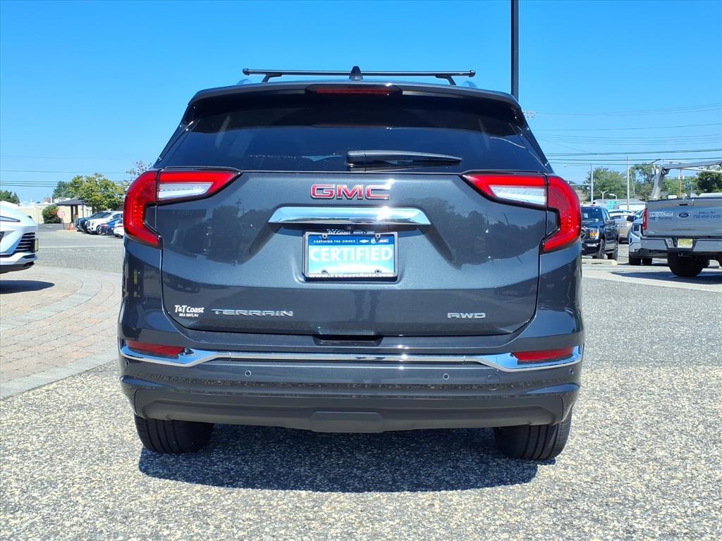 This 2022 GMC Terrain Denali SUV is a vehicle that is sure to turn heads. Boasting an all-wheel drive system, this car has been meticulously maintained and has driven only 33,177 miles. The 1.5 liter 4 cylinder engine is turbocharged and features green exterior paint, giving it a sleek and modern look. Inside, you'll find features such as blind spot sensor, hill start assist, and part time four wheel drive, as well as a navigation system with voice recognition and touch screen display. This car also has a crash test rating of 5 out of 5 stars, making it an excellent choice for those looking for safety and reliability. Contact Details: T & T Coast Buick GMC, 2205 Route 35, Sea Girt, NJ, 08750, webleads@coastbuick.com, 7322230025.