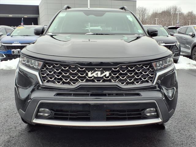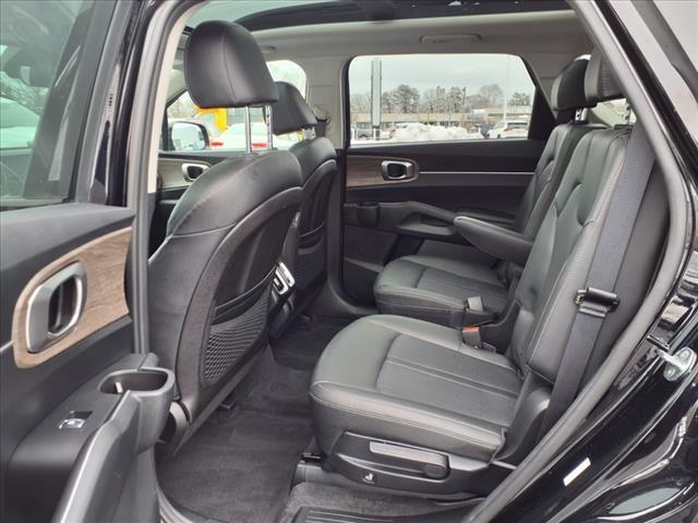 22/27 City/Highway MPG Recent Arrival! CARFAX One-Owner. 3.316 Axle Ratio, 3rd row seats: split-bench, 4-Wheel Disc Brakes, 6 Speakers, ABS brakes, Air Conditioning, Alloy wheels, AM/FM radio: SiriusXM, Apple CarPlay & Android Auto, Auto High-beam Headlights, Automatic temperature control, Brake assist, Bumpers: body-color, Cargo Net, Carpeted Floor Mats, Cross Bars X-Line, Delay-off headlights, Driver door bin, Driver vanity mirror, Dual front impact airbags, Dual front side impact airbags, Electronic Stability Control, Emergency communication system: UVO Link, Exterior Parking Camera Rear, Folding Cargo Tray, Four wheel independent suspension, Front anti-roll bar, Front Bucket Seats, Front Center Armrest, Front dual zone A/C, Front fog lights, Front reading lights, Fully automatic headlights, Heated door mirrors, Heated Front Bucket Seats, Heated front seats, Illuminated entry, Knee airbag, Leather Shift Knob, Leather steering wheel, Low tire pressure warning, Navigation System, Occupant sensing airbag, Outside temperature display, Overhead airbag, Overhead console, Panic alarm, Passenger door bin, Passenger vanity mirror, Power door mirrors, Power driver seat, Power Liftgate, Power moonroof, Power steering, Power windows, Radio data system, Radio: AM/FM Audio System, Rear air conditioning, Rear anti-roll bar, Rear reading lights, Rear window defroster, Rear window wiper, Remote keyless entry, Roof rack: rails only, Security system, Smart Key w/ Push Button and Remote Start, Speed control, Speed-sensing steering, Split folding rear seat, Spoiler, Steering wheel mounted audio controls, SynTex Artificial Leather Seat Trim, Tachometer, Telescoping steering wheel, Tilt steering wheel, Traction control, Trip computer, Turn signal indicator mirrors, Variably intermittent wipers, Wheels: 8.5J x 20Matte Gray Alloy. 2022 Kia Sorento X-Line EX Certified. Kia Certified Pre-Owned Details: * Includes Rental Car and Trip Interruption Reimbursement. 3 month Sirius trial subscri