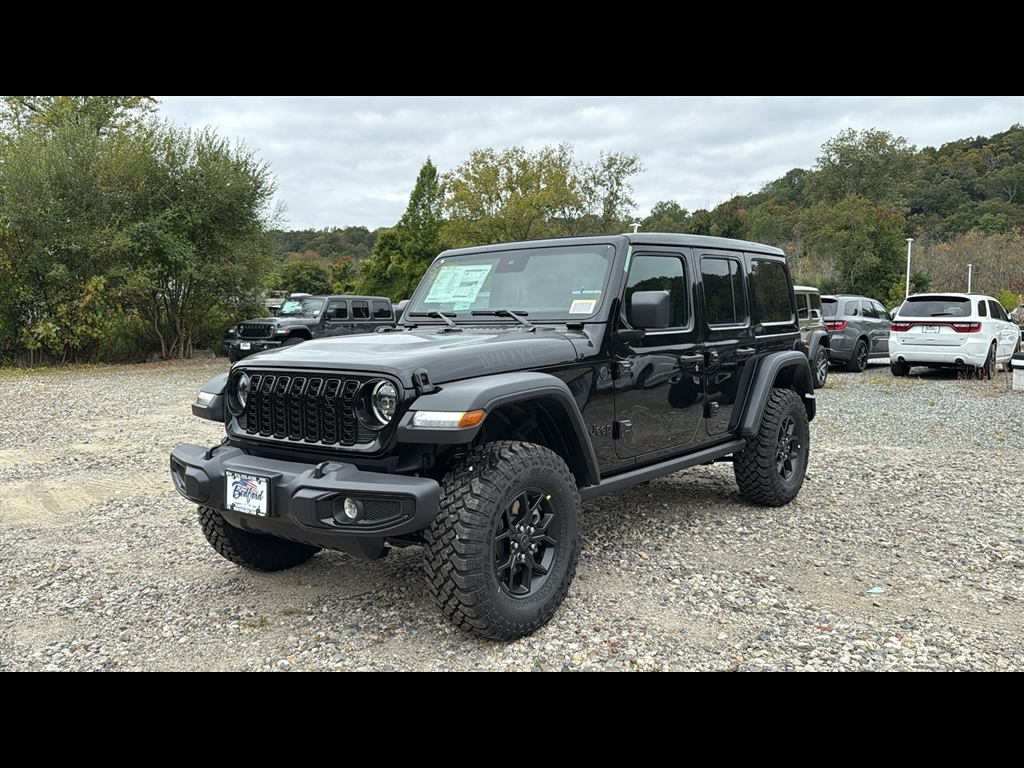 Heated Seats, Moonroof, iPod/MP3 Input, Satellite Radio, Back-Up Camera, 4x4, Trailer Hitch, SKY 1-TOUCH POWER TOP, ENGINE: 3.6L V6 24V VVT UPG I W/ESS, CONVENIENCE GROUP, SAFETY GROUP. Black Clearcoat exterior and Black interior KEY FEATURES INCLUDE4x4, Back-Up Camera, Satellite Radio, iPod/MP3 Input, Aluminum Wheels. Jeep Willys with Black Clearcoat exterior and Black interior features a V6 Cylinder Engine with 285 HP at 6400 RPM*. OPTION PACKAGESQUICK ORDER PACKAGE 24W WILLYS Engine: 3.6L V6 24V VVT UPG I w/ESS, Transmission: 8-Speed Automatic (850RE), 7 & 4 Pin Wiring Harness, Conventional Differential Front Axle, 4-Wheel Drive Swing Gate Decal, Black Grille, Injection Molded Black Rear Bumper, Dana M210 Wide HD Tube Front Axle, Daytime Running Lamps LED Accents, Front LED Fog Lamps, LED Premium Reflector Headlamps, E-Locker Rear Axle, Corning Gorilla Glass, Security Alarm, Class II Receiver Hitch, Mold In Color Bumper w/Gloss Black, Advanced Brake Assist, Automatic Headlamps, Off-Road Plus Mode, Willys Hood Decal, Full Speed Forward Collision Warning Plus, Rock Protection Sill Rails, 97 MPH Vehicle Max Speed Calibration, Power Heated Mirrors, Enhanced Adaptive Cruise Control, Auxiliary Switches, Dana M220 Wide Rear Axle, Molded, TRANSMISSION: 8-SPEED AUTOMATIC (850RE) Adaptive Cruise Control w/Stop, Anti-Lock 4-Wheel Disc Brakes, Integrated Radar Camera Module (IRCM), Dana M200 Rear Axle, Selec-Speed Control, SKY 1-TOUCH POWER TOP Rear Window Defroster, Rear Window Wiper/Washer, Removable Rear Quarter Windows, Power Top Quarter Window Storage Bag, CONVENIENCE GROUP Emergency/Assistance Call, 2-Door Passive Entry, Front Door Locks, Remote Start System, Cluster 7.0 TFT Color Display, Universal Garage Door Opener, Heated Front Seats, Air Conditioning w/Auto Temp Control, Heated Steering Wheel, Air Filtering, SAFETY GROUP ParkSense Rear Park Assist System, Auto High Beam Headlamp Control, Blind Spot & Cross Path Detection, LED Ta
