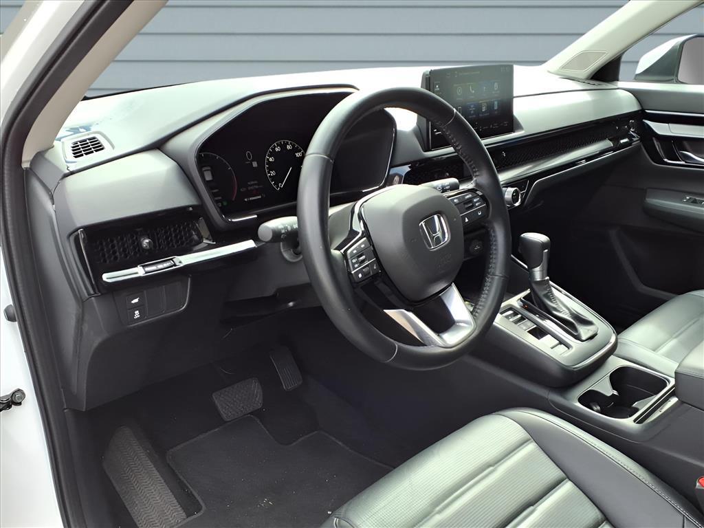 Certified. Platinum White 2025 Honda CR-V EX-L AWD CVT 1.5L I4 DOHC 16V **ONLY HAS 11K MILES**, **ACCIDENT FREE**, **CERTIFIED**, 2025 HondaCR-V EX-L, 4D Sport Utility, 1.5L I4 DOHC 16V, CVT, AWD, Platinum White, Black Leather. Recent Arrival! 26/31 City/Highway MPG HondaTrue Certified Details: * Warranty Deductible: $0 * Vehicle History * Transferable Warranty * Vehicles purchased within New Vehicle Limited Warranty period: extends New Vehicle Limited Warranty to 5 years*/60,000 miles*. Honda Care Roadside Assistance for 2 year/100,000 miles (whichever occurs first). Up to two complimentary oil changes within the first year of ownership. SiriusXM 90-Day Trial. * Roadside Assistance * 182 Point Inspection * Limited Warranty: 24 Month/100,000 Mile (whichever comes first) after new car warranty expires or from certified purchase date * Powertrain Limited Warranty: 84 Month/100,000 Mile (whichever comes first) from original in-service date