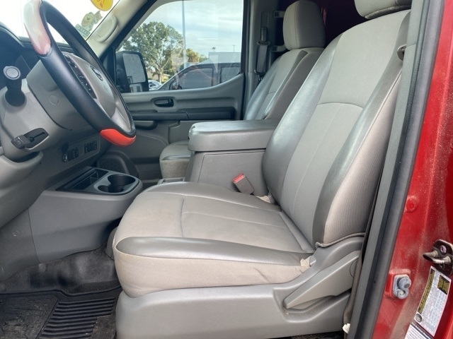 Inside the cab is a roomy comfortable interior with wide, supportive seating and an expansive instrument panel. The passenger seat includes a segment-exclusive fold-down feature, providing a convenient worktable. An available lockable center console offers innovative storage compartments and space to hold binders, hanging file folders and a laptop computer. Other convenient storage spaces include a wide overhead console (available with High Roof models), underseat storage drawers (NV2500 HD and NV3500 HD models) and large door pockets.