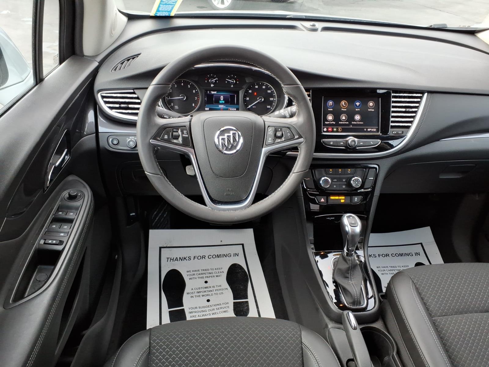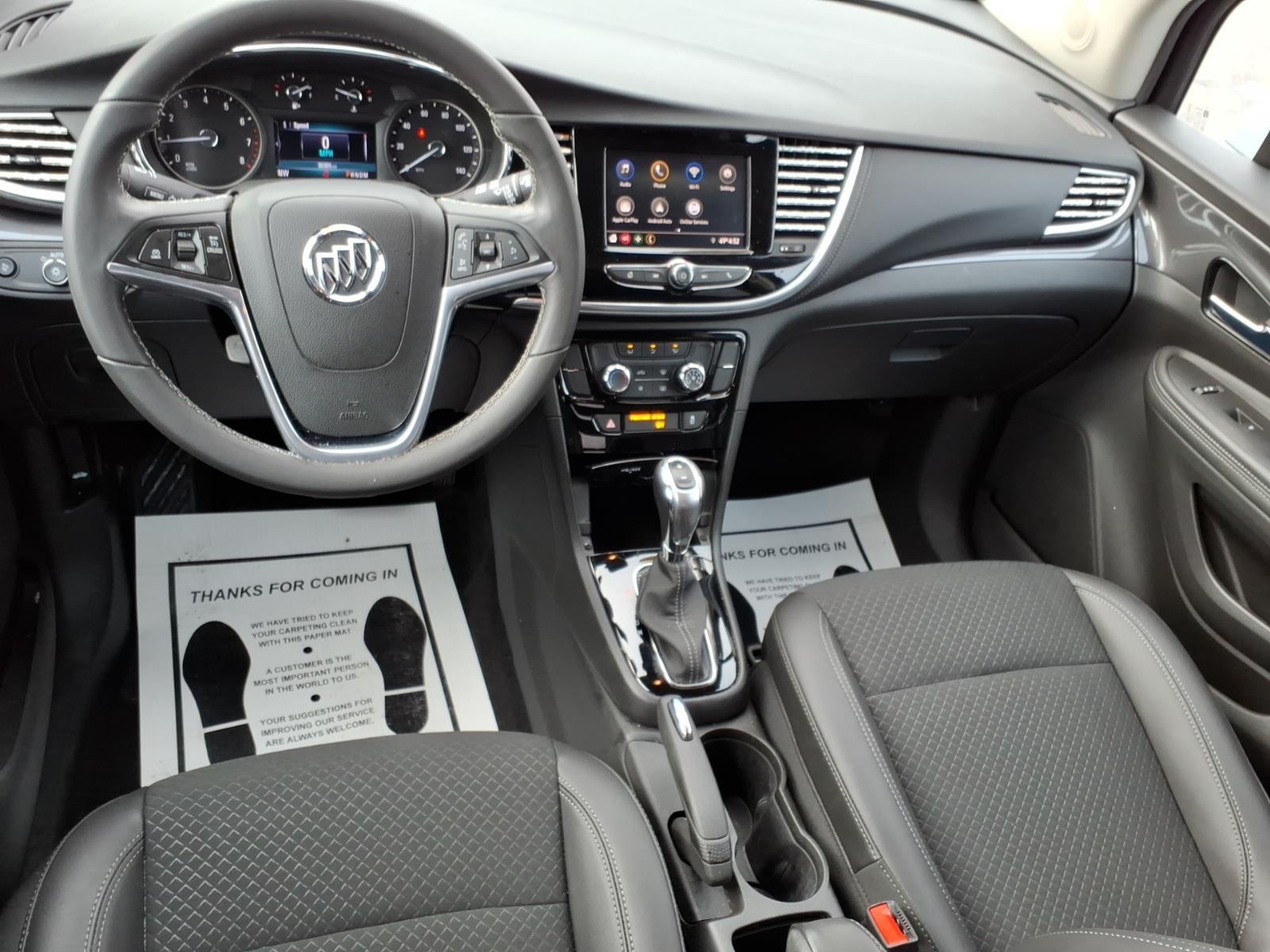 Encore also features plenty of storage capacity and storage compartments. With the rear seat in place, there’s room for at least six full grocery bags and with the rear seat folded, there’s room for golf clubs and overnight bags for a weekend getaway. Even the front passenger seat folds flat to extend the cargo length and accommodate long items that would not normally fit in a vehicle of this size.