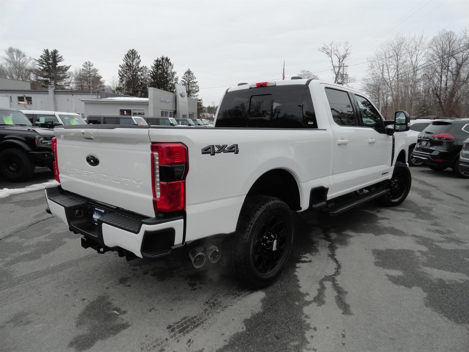The vehicle of 2026 is a Ford Crew Cab 4x4 F-350 Super Duty Lariat, with a 4x4 Power Stroke 6.7L Biodiesel Turbo V8 475hp 1050 lb-ft engine and common rail direct injection. It has a star white metallic tri-coat (az) exterior and black onyx (6b) interior. This vehicle is equipped with many features such as a touch screen display, Bluetooth audio connection, blind spot sensor, hill start assist, part time four wheel drive, navigation system with voice recognition, navigation with touch screen display, and Bluetooth phone connectivity. The leather seats provide a comfortable ride for all passengers. With its advanced technology and luxurious design, this vehicle is sure to turn heads on the road in 2026.