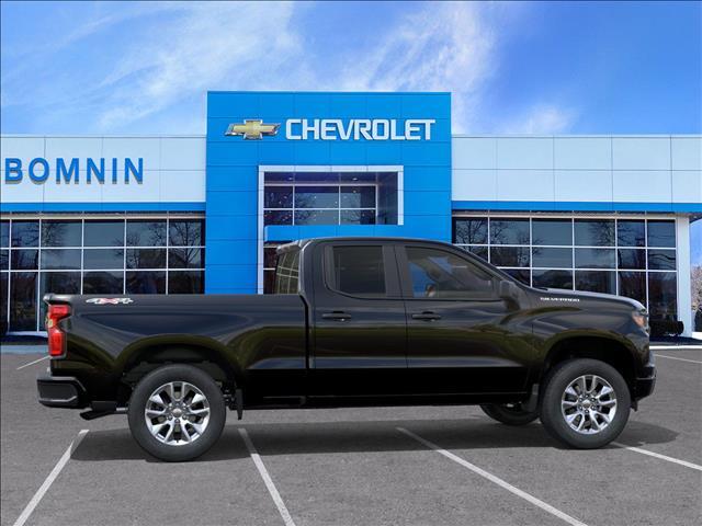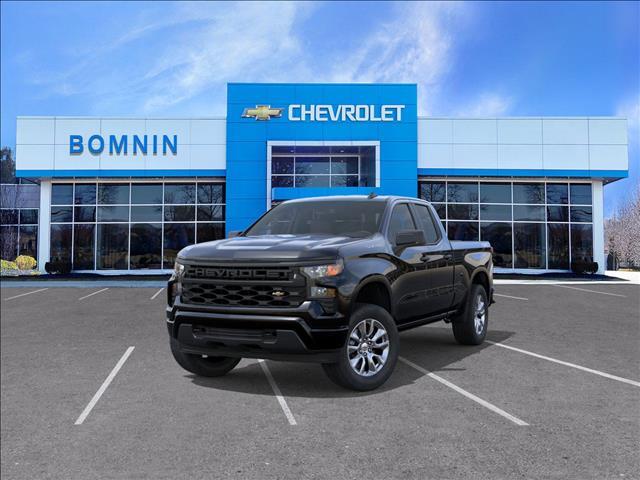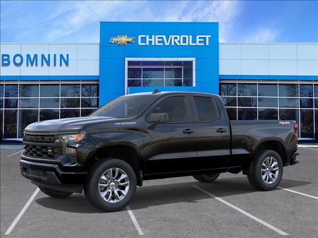 Black 2026 Chevrolet Silverado 1500 Custom 4WD 2.7L I4 Turbocharged DOHC 16V LEV3-SULEV30 310hp 8-Speed Automatic 8-Speed Automatic, 4WD, Black Cloth. Price does not include Tax, Title, License and Documentary Fee; Price does include: $1000 - GM Bonus Cash. Exp. 11/03/2025 $1750 - Chevrolet Consumer Cash Program. Exp. 11/03/2025
