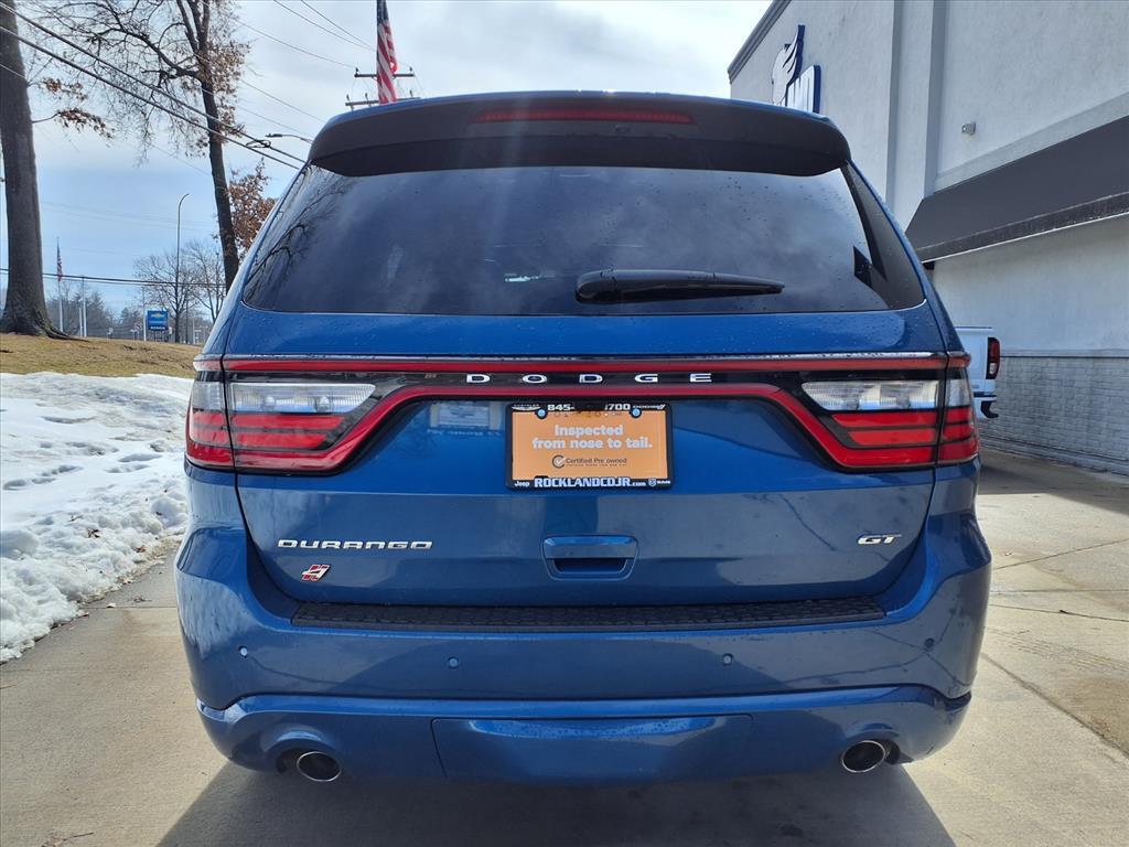 Experience the exceptional 2024 Dodge Durango GT Plus, a versatile and well-equipped SUV thats ready to elevate your driving experience. With its sleek blue exterior and a host of premium features, this Durango is poised to exceed your expectations. - QUICK ORDER PACKAGE 2BG GT PLUS - Integrated Roof Rail Crossbars - Power Driver/Passenger 4-Way Lumbar Adjust - Disassociated Touchscreen Display - Power 8-Way Driver Memory 8-Way Passenger Seats - Ventilated Front Seats - GPS Navigation - 4G LTE Wi-Fi Hot Spot - Power Sunroof - SiriusXM w/360L - Trailer Brake Control - Heated Second Row Seats - Blind Spot w/Trailer Detection - 10.1Touchscreen Display - HD Radio This Durango GT Plus is powered by a robust 3.6L V6 24V VVT engine, paired with an 8-speed automatic transmission and all-wheel drive, delivering an impressive balance of power and efficiency with 18 city/25 highway MPG. The cabin is designed with your comfort in mind, featuring dual-zone automatic climate control, heated front seats, and a premium audio system to keep you entertained on every journey. Dodge has equipped this Durango with a comprehensive suite of advanced safety features, including Full Speed Forward Collision Warning Plus, Adaptive Cruise Control with Stop, and Blind Spot Monitoring with Trailer Detection, ensuring you and your passengers travel with confidence. As a Chrysler Certified Pre-Owned vehicle, this 2024 Dodge Durango GT Plus comes with a comprehensive warranty and a 125-point inspection, giving you the peace of mind you deserve. With low mileage and a clean CARFAX history, this SUV is ready to be your familys next adventure-ready companion. Experience the power, versatility, and premium features of the 2024 Dodge Durango GT Plus. Schedule a test drive today and discover why this SUV is the perfect blend of style, capability, and value.