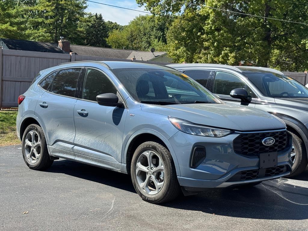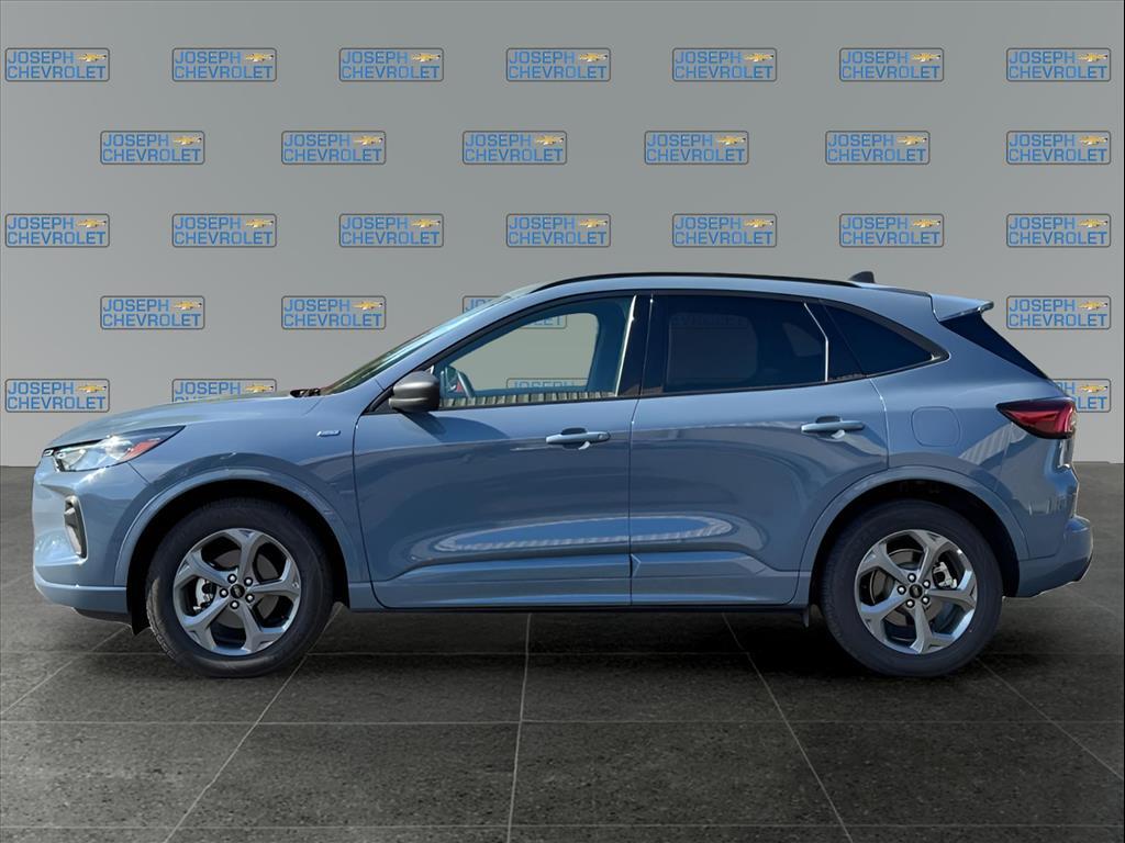 (Joseph Chevrolet) is proud to present you with another True Market Priced Pre-Owned Vehicle. This 2024 Ford Escape ST-Line is loaded with the following Factory Options:Cold Weather Package (Heated Front Row Seats, Heated Sideview Mirrors, Heated Steering Wheel, and Remote Starter System), Equipment Group 300A, 3.81 Axle Ratio, 4-Wheel Disc Brakes, 6 Speakers, ABS brakes, Air Conditioning, Alloy wheels, AM/FM radio: SiriusXM, AM/FM Stereo, Auto High-beam Headlights, Automatic temperature control, Brake assist, Bumpers: body-color, Compass, Delay-off headlights, Driver door bin, Driver vanity mirror, Dual front impact airbags, Dual front side impact airbags, Electronic Stability Control, Emergency communication system: SYNC 4 911 Assist, Exterior Parking Camera Rear, FordPass Connect, Four wheel independent suspension, Front anti-roll bar, Front Bucket Seats, Front Center Armrest, Front dual zone A/C, Front License Plate Bracket, Front reading lights, Fully automatic headlights, Illuminated entry, Knee airbag, Low tire pressure warning, Occupant sensing airbag, Outside temperature display, Overhead airbag, Overhead console, Panic alarm, Passenger door bin, Passenger vanity mirror, Power door mirrors, Power driver seat, Power Liftgate, Power steering, Power windows, Radio data system, Rear anti-roll bar, Rear reading lights, Rear seat center armrest, Rear window defroster, Rear window wiper, Remote keyless entry, Roof rack: rails only, Speed control, Speed-sensing steering, Speed-Sensitive Wipers, Split folding rear seat, Spoiler, Sport steering wheel, Steering wheel mounted audio controls, SYNC 4, Tachometer, Telescoping steering wheel, Tilt steering wheel, Traction control, Trip computer, Variably intermittent wipers, Vinyl/Cloth Front Sport Contour Bucket Seats, and Wheels: 18Rock Metallic Painted Aluminum. CARFAX One-Owner. Clean CARFAX. Vapor Blue 2024 Ford Escape ST-Line 4D Sport Utility AWD 1.5L EcoBoost 8-Speed Automatic