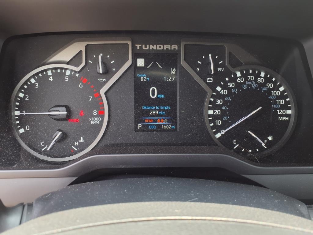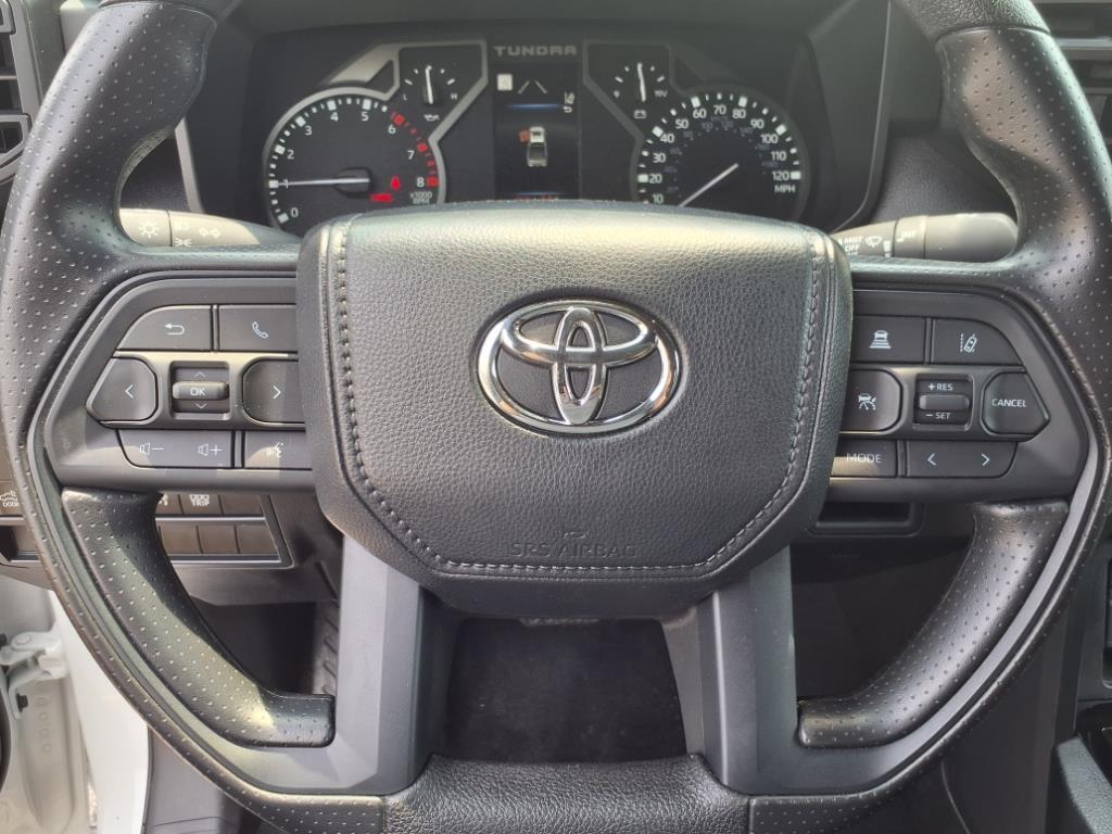 The brawny chiseled look of the Tundra is the ideal platform for the optional TRD Pro Off-Road Package. Model specific features include: split five-spoke TRD Off-Road Package alloy wheels with black accents and all-terrain P275/65R18 tires, trail-tuned Bilstein shock absorbers, engine skid plate, fuel tank skid plate, front tow hooks, LED fog lights (SR5), TRD Off Road floor mats (SR5/Limited), and bed side TRD Off-Road decal.