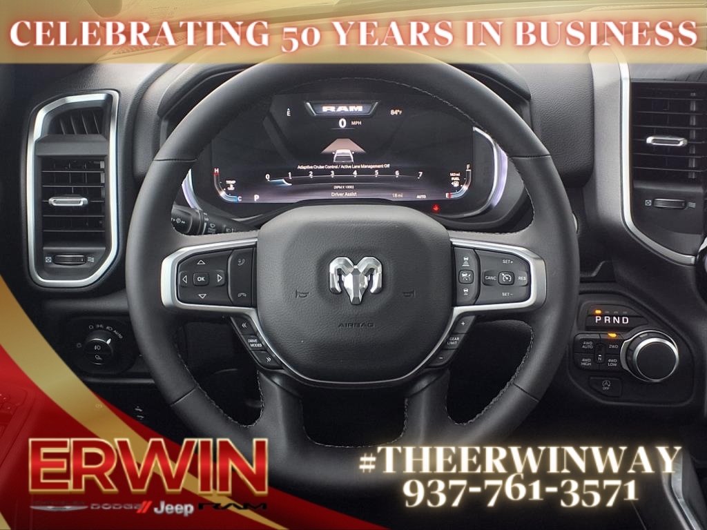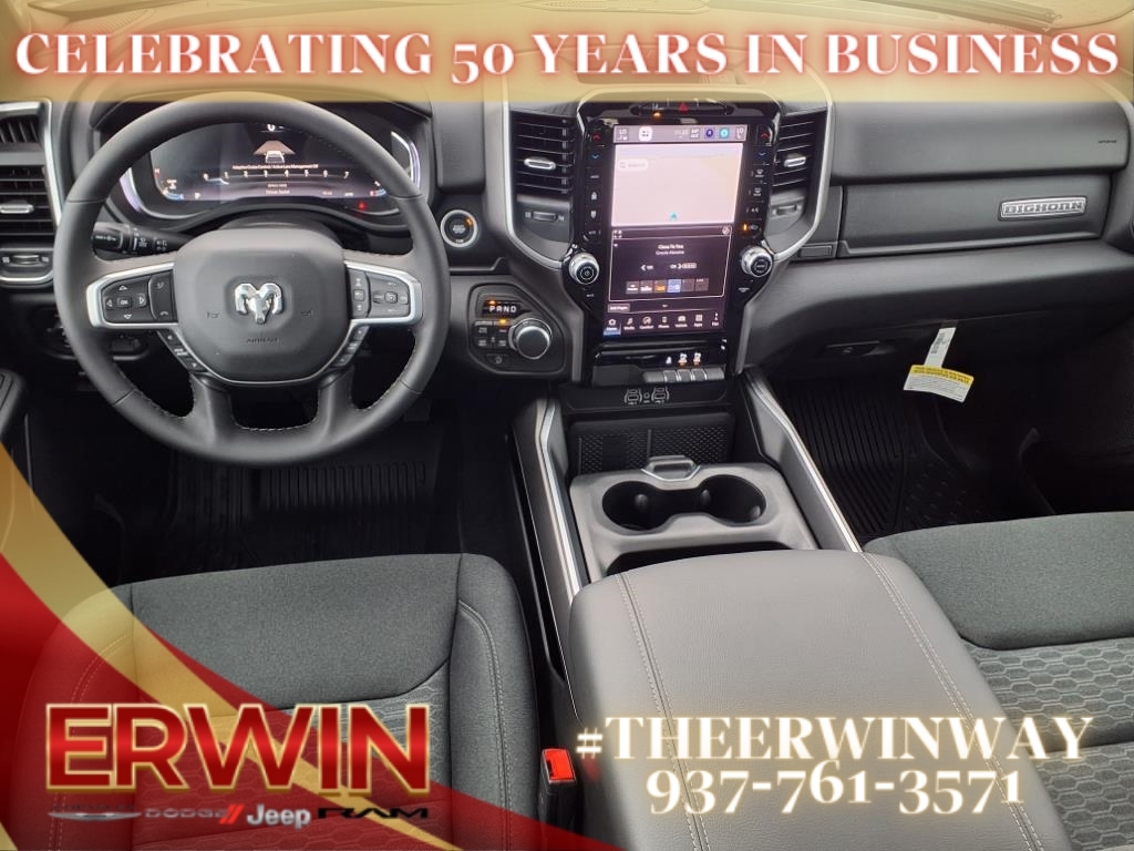 This 2026 RAM Crew Cab 4x4, 1500 Big Horn is a state-of-the-art motorcar. It features a 3.0 liter 6 cylinder engine with twin turbo capabilities, and a granite crystal metallic clear coat (pau) exterior. Inside, you'll find a touch screen display, Bluetooth audio connection, blind spot sensor, hill start assist, part time with on demand four wheel drive, Apple Carplay ready, and Bluetooth phone connectivity. This car is truly state-of-the-art and will surely turn heads wherever it goes! Contact Details: Erwin Chrysler Dodge Jeep, 2775 S Co Rd. 25a, Troy, OH, 45373, pat@erwinchrysler.com, 9373355696.