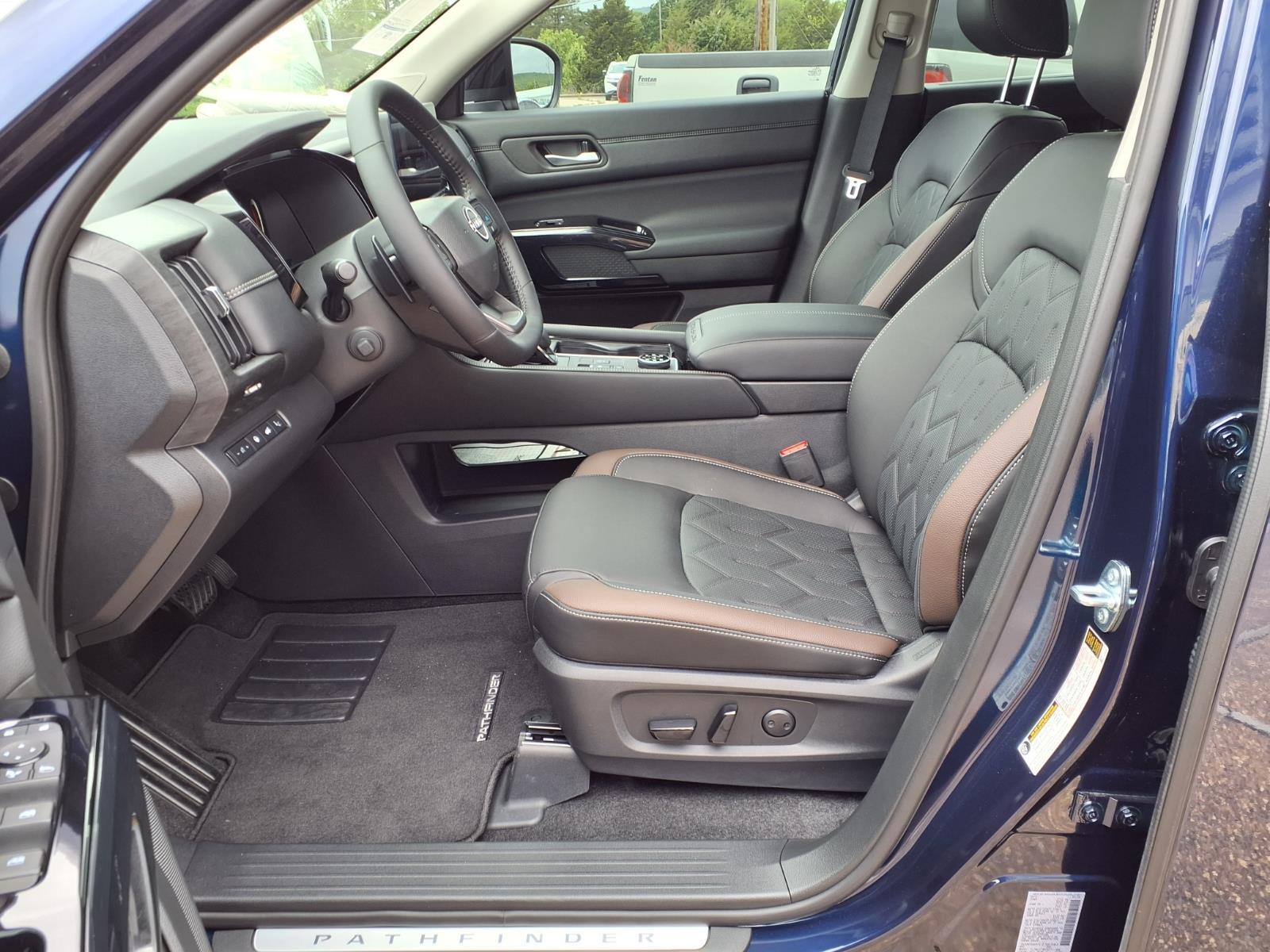 The 2026 Nissan Pathfinder Platinum is a vehicle that is sure to turn heads. This SUV all wheel drive is equipped with a 3.5 liter 6 cylinder engine and fuel injection, making it a powerful and efficient ride. Its deep ocean blue exterior gives it a sleek and modern look, while its 5 out of 5 star crash test rating ensures that you can drive with confidence. The vehicle also comes with a number of features such as a touch screen display, Bluetooth audio connection, blind spot sensor, hill start assist, and more. With its semi-aniline leather interior and faux leather trim center console, this car is sure to provide you with a luxurious driving experience. Contact Details: Fenton Of Mcalester, 1441 South George Nigh Expwy., Mcalester, OK, 74501, Cindy.Carr@Fentonmotors.Net, 9184230964.