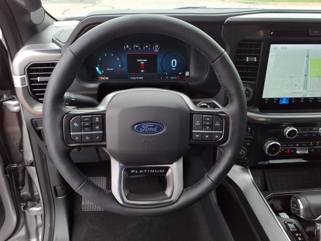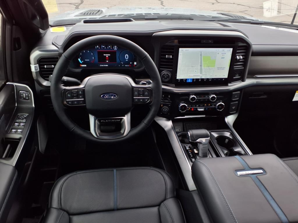 This 2025 Ford F-150 Platinum FX4 Off-Road Pkg in Iconic Silver Metallic comes with the following features: 3.5L V6 EcoBoost 10-Speed Automatic 4WD EXCELLENT CONDITION, LEATHER SEATS, HEATED/VENTILATED SEATS, NAVIGATION SYSTEM, BLUETOOTH, ADAPTIVE CRUISE CONTROL, LANE KEEPING SYSTEM, BLIS, COLLISION WARNING SYSTEM, BACKUP CAMERA, and EXTENDED RANGE FUEL TANK Equipment Group 702A High (Heads-Up Display, Radio: B&O Unleashed Sound System by Bang & Olufsen, and Twin Panel Moonroof), FX4 Off-Road Package (4x4 FX4 Off-Road Bodyside Decal, Hill Descent Control, Monotube Rear Shocks, Off-Road Tuned Front Shock Absorbers, and Rock Crawl Mode), GVWR: 7,100 lbs Payload Package, 4WD, and Electronic Locking w/3.55 Axle Ratio Equipment Group 702A High (Heads-Up Display, Radio: B&O Unleashed Sound System by Bang & Olufsen, and Twin Panel Moonroof), FX4 Off-Road Package (4x4 FX4 Off-Road Bodyside Decal, Hill Descent Control, Monotube Rear Shocks, Off-Road Tuned Front Shock Absorbers, and Rock Crawl Mode), GVWR: 7,100 lbs Payload Package, 4WD, Electronic Locking w/3.55 Axle Ratio, 4-Wheel Disc Brakes, 8 Speakers, ABS brakes, Adjustable pedals, Air Conditioning, AM/FM radio: SiriusXM with 360L, Auto High-beam Headlights, Auto tilt-away steering wheel, Auto-dimming door mirrors, Auto-dimming Rear-View mirror, Automatic temperature control, Brake assist, Bumpers: body-color, Compass, Delay-off headlights, Driver door bin, Driver vanity mirror, Dual front impact airbags, Dual front side impact airbags, Electronic Stability Control, Emergency communication system: SYNC 4 911 Assist, Front anti-roll bar, Front Bucket Seats, Front Center Armrest, Front dual zone A/C, Front fog lights, Front reading lights, Front wheel independent suspension, Fully automatic headlights, Garage door transmitter, Heated door mirrors, Heated front seats, Heated rear seats, Heated steering wheel, Illuminated entry, Leather steering wheel, Low tire pressure warning, Memory seat, Navigation system: Connected Navigation, Occupant sensing airbag, Outside temperature display, Overhead airbag, Overhead console, Panic alarm, Passenger door bin, Passenger vanity mirror, Pedal memory, Power door mirrors, Power driver seat, Power passenger seat, Power steering, Power windows, Radio data system, Radio: B&O Sound System by Bang & Olufsen, Rain sensing wipers, Rear reading lights, Rear seat center armrest, Rear step bumper, Rear window defroster, Remote keyless entry, Security system, Speed control, Split folding