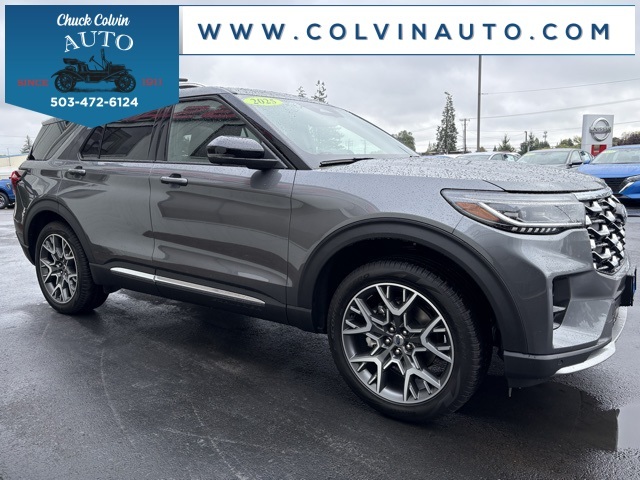 Sale Price is After the Following Factory Incentives:$1500 - Bonus Customer Cash. Exp. 01/05/2026 Carbonized Gray Metallic 2025 Ford Explorer Platinum 4WD 10-Speed Automatic 3.0L EcoBoost V6 2025 Ford Explorer, Chuck Colvin Auto Center In Business Since 1911!, 4WD, Leather Seating Surfaces Sport Captain Chairs, Lux Leather Package, Platinum Badges on Front Row Seats, Quilting & Stitching on Door Panels, Quilting & Stitching on Seats, Ultimate Package, Wheels: 21" Dark Alloy-Painted Machined Aluminum.Family owned and operated since 1911. We have developed a loyal dedicated following based on our unique approach to business. All the information you need, up front, with no hassles! Every effort is made by dealer to ensure accurate pricing, however mistakes can occur by human error or data feed error. Please verify all pricing with dealer prior to purchase as dealership not required to honor any price posted in error by human error or typo or by data feed error from one of our many digital partners. * Pricing - All vehicle pricing shown is assumed to be correct and accurate. Incentives, credit restrictions, qualifying programs, residency, and fees may raise, lower, or otherwise augment monthly payments. Additionally, incentives offered by the manufacturer are subject to change and may fluctuate or differ based on region and other considerations. Unless otherwise noted or specified, pricing shown does not include title, registration, or tax fees and costs.