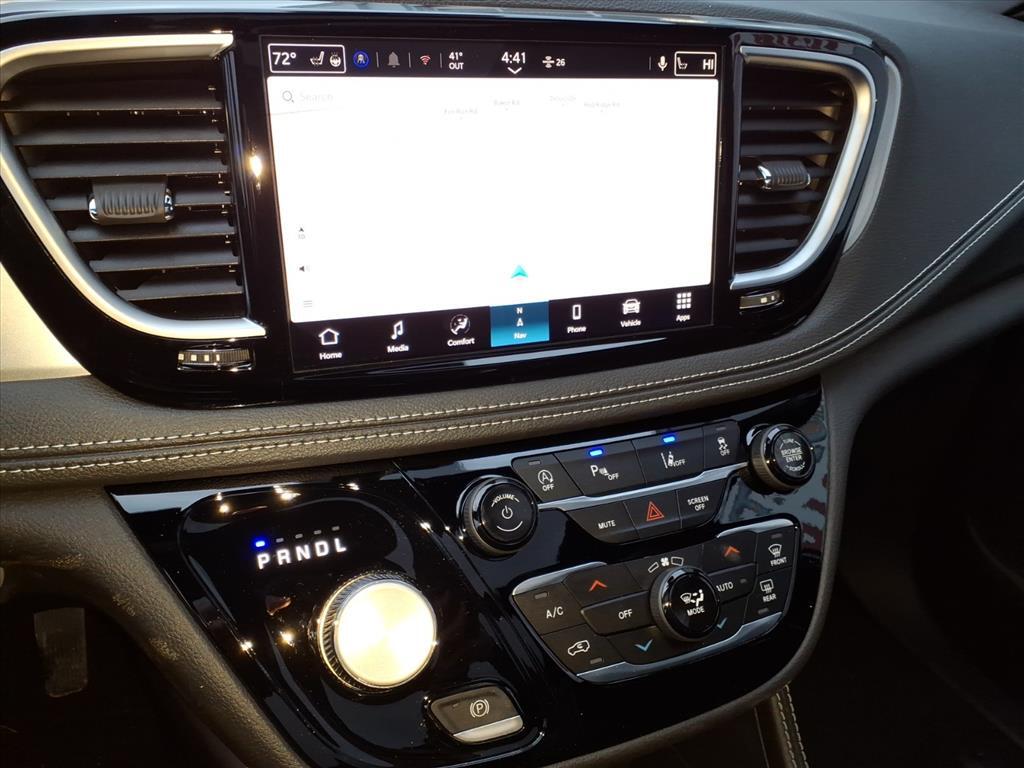 The 2026 Chrysler Pacifica Limited is a state-of-the-art vehicle that offers an impressive array of features. This all-wheel drive motorcar is powered by a 3.6 liter 6 cylinder engine with sequential port fuel injection, and has a white exterior. It has been awarded a crash test rating of 5 out of 5 stars, making it one of the safest cars on the market. The Pacifica Limited also comes equipped with a number of modern conveniences, such as a touch screen display, Bluetooth audio connection, blind spot sensor, hill start assist, on demand four wheel drive, navigation system with voice recognition, navigation with touch screen display, and Bluetooth phone connectivity. Additionally, the vehicle offers premium leather seats for added comfort and luxury. With its combination of safety, performance, and luxury features, the 2026 Chrysler Pacifica Limited is sure to be a popular choice among car buyers.