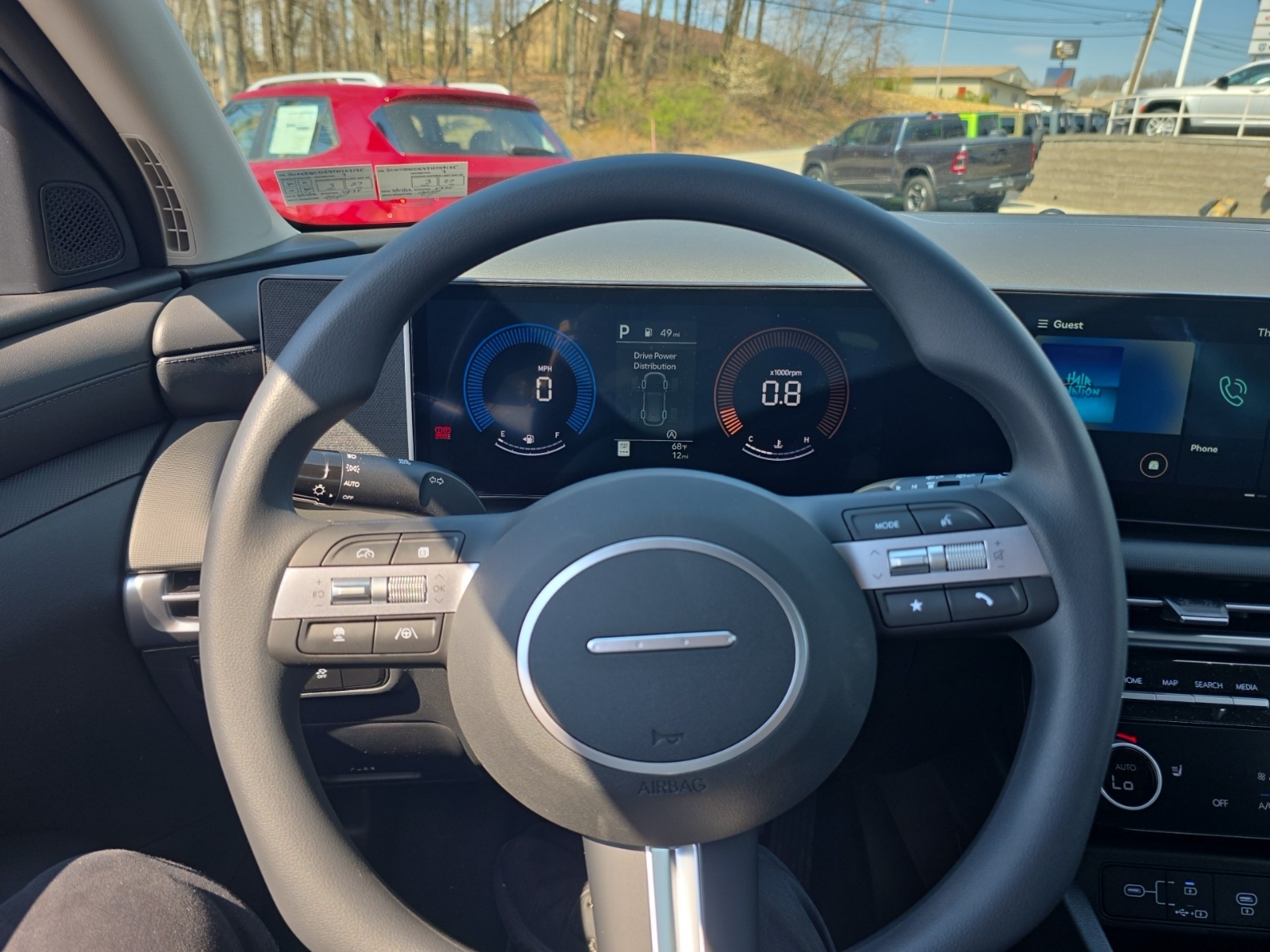 An advanced AWD system developed by Hyundai in conjunction with Magna Powertrain is an available option. The system includes a driver-selectable AWD lock that allows a differentiated torque split between front and rear wheels, for off-road and extremely slippery road conditions. The system also includes Active Cornering Control, which automatically transfers torque to the wheels with the most traction. The system reduces understeer and enhances cornering performance by braking the inside rear wheel and delivering more torque to the outside rear wheel, providing a torque-vectoring effect.