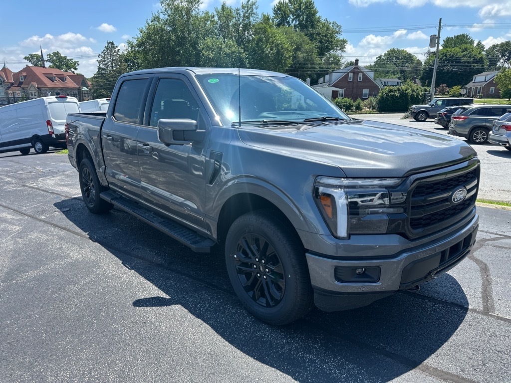 The Ford Supercrew 4x4 F-150 Lariat is a 2025 model that has been crafted with the latest automotive technology. It features a 3.5 liter 6 cylinder engine with a carbonized gray exterior and a black interior. It has been given a crash test rating of 5 out of 5 stars, making it one of the safest vehicles on the road today. It also comes with a number of features such as touch screen display, Bluetooth audio connection, blind spot sensor, hill start assist, part time with on demand four wheel drive, navigation system with voice recognition, and Bluetooth phone connectivity. This car is truly one of a kind! Thank you for considering Paoli Ford for your next new vehicle purchase! We strive to make your experience transparent and hassle free! Stop by today to see why the community has chosen us since 1921!