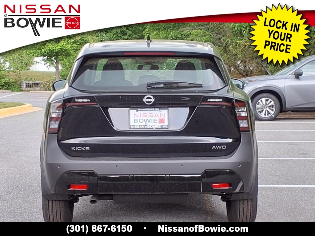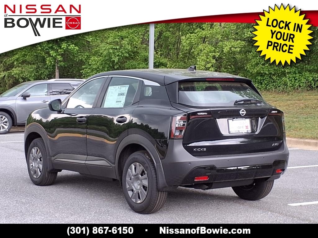 Super Black 2025 Nissan Kicks S AWD CVT with Xtronic 2.0L DOHC Recent Arrival! 27/34 City/Highway MPG