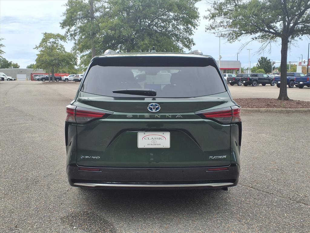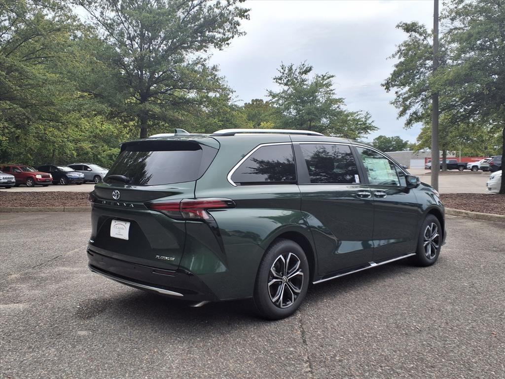 This New 2025 Toyota Sienna Platinum, is Cypress in color with an Black Leather interior. Stock Number SS36C809. You can connect with us by calling 757-838-5000 Important Package and Feature Information Safety and Security Lane departure prevention - Keep it between the lines. It only takes a moment of inattention for your vehicle to drift. With lane departure prevention, your vehicle takes corrective action to help you avoid unintentionally moving out of your lane. Lane departure prevention is an extra level of safety for you and those around you. Forward collision mitigation - Forward thinking. You look away for just a second and suddenly the vehicle in front of you has stopped. Thats when the forward collision mitigation system comes to life. When it senses an impending impact, it will activate a combination of features to help prevent or reduce the severity of an accident. Forward collision mitigation is always looking ahead. Pedestrian impact prevention - An extra step toward safety. Pedestrians dont always stop, look, and listen, but with Pedestrian Impact Prevention, your vehicle is equipped to better see them and avoid them. This system constantly monitors the road ahead to identify and track pedestrians. It projects that image to an interior display screen, AND should an impact become likely, Pedestrian impact prevention takes steps to avoid a collision. Hands-on cruise control. Set it and forget it. Road trips used to be stressful. Cruise control only managed speed, but not distance or safety. Now, with hands-on cruise control, simply set your desired speed and let sensor technology maintain a safe distance between you and surrounding vehicles. It slows you down; speeds you up and even keeps you in your own lane. Meet your ultimate co-pilot with hands-on cruise control.Technology and Tele