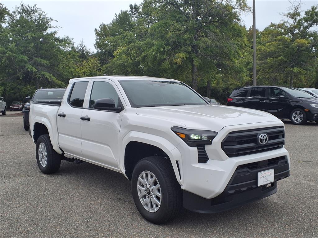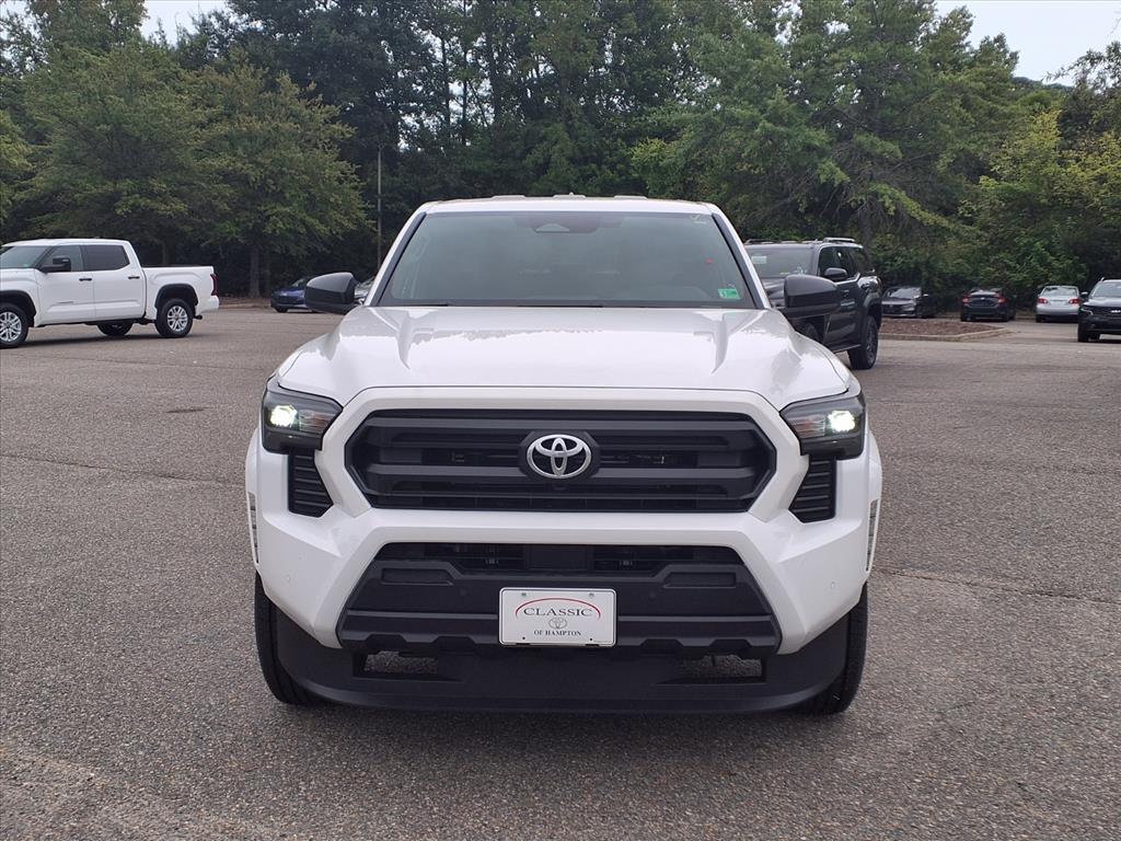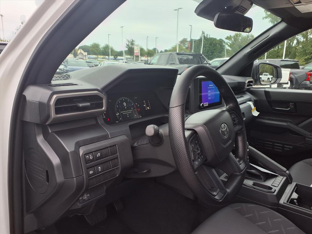 This New 2025 Toyota Tacoma SR, is Ice Cap in color with an Black interior. Stock Number ST31B266. You can connect with us by calling 757-838-5000 Important Package and Feature Information SR Upgrade Package ($1,495 value)Blind Spot MonitorFull-Size Spare (245/70R17)Smart Key W/Digital Key Technology Convenience GPS linked cruise control - Set it and forget it. Road trips used to be stressful, until GPS linked cruise control set the pace. Simply set the desired speed and the system uses GPS navigation data to maintain that speed without driver intervention - including slowing down for curves and anticipating hills. This can help minimize driver fatigue and improve overall fuel economy. Meet your ultimate co-pilot; GPS linked cruise control.Safety and Security Forward collision mitigation - Forward thinking. You look away for just a second and suddenly the vehicle in front of you has stopped. Thats when the forward collision mitigation system comes to life. When it senses an impending impact, it will activate a combination of features to help prevent or reduce the severity of an accident. Forward collision mitigation is always looking ahead. Pedestrian impact prevention - An extra step toward safety. Pedestrians dont always stop, look, and listen, but with Pedestrian Impact Prevention, your vehicle is equipped to better see them and avoid them. This system constantly monitors the road ahead to identify and track pedestrians. It projects that image to an interior display screen, AND should an impact become likely, Pedestrian impact prevention takes steps to avoid a collision. Hands-on cruise control. Set it and forget it. Road trips used to be stressful. Cruise