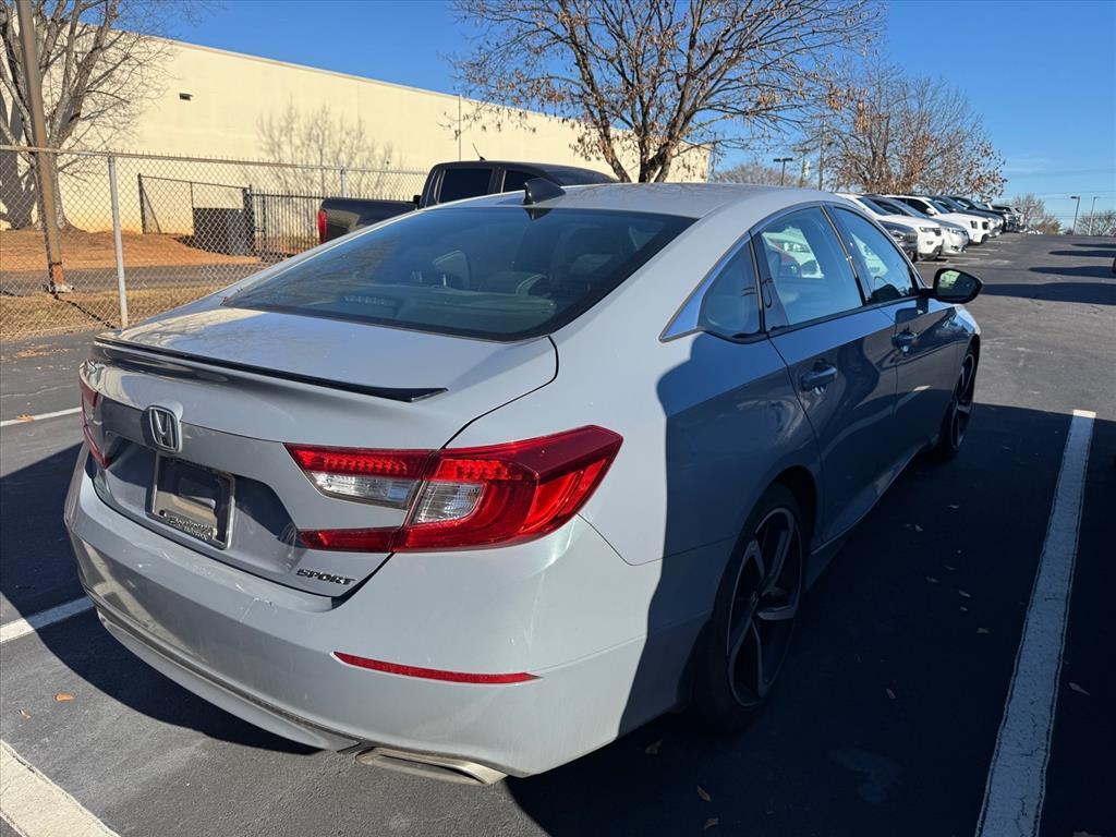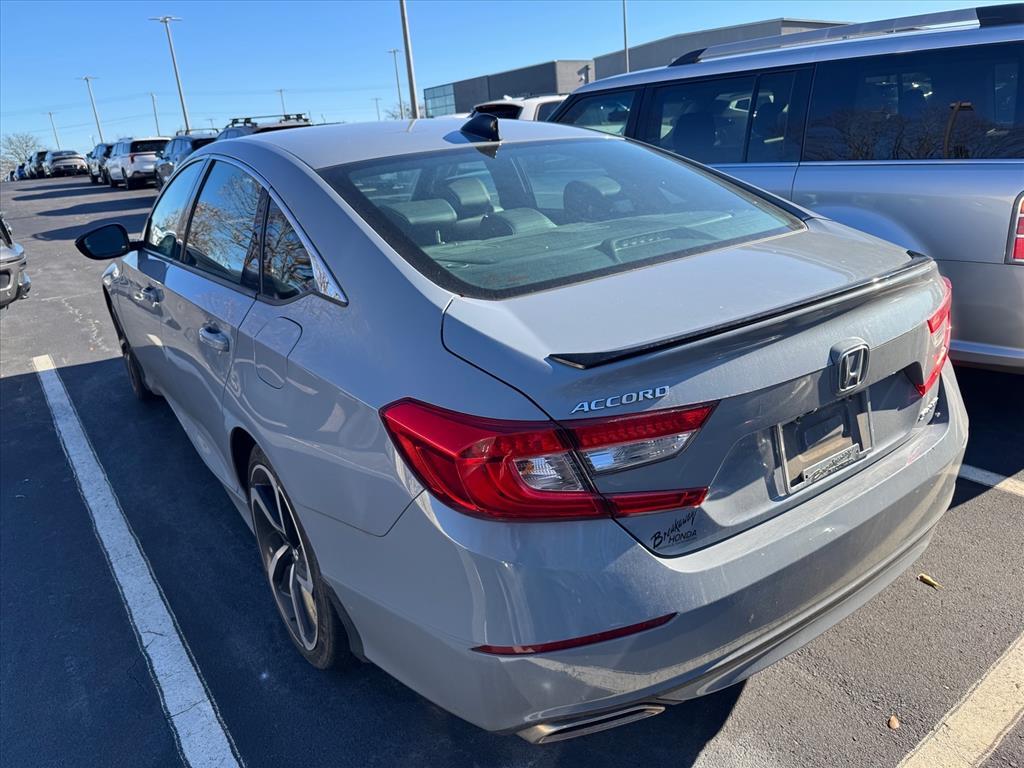 CARFAX One-Owner. Clean CARFAX. 2022 Honda Accord Sport Adaptive Cruise Control: Adaptive Cruise Control (ACC) with Low-Speed Follow, Apple CarPlay/Android Auto, Auto High-beam Headlights, Automatic temperature control, Exterior Parking Camera Rear, Fabric w/Synthetic Leather Seat Trim, Forward collision: Collision Mitigation Braking System (CMBS) FCW mitigation, Front dual zone A/C, Lane Departure Warning System, Power driver seat, Radio: 180-Watt AM/FM Audio System, Remote keyless entry, Speed-Sensitive Wipers, Steering wheel mounted audio controls, Wheels: 19Machine-Finished Alloy w/Black Inserts, 4-Wheel Disc Brakes, 8 Speakers, ABS brakes, Air Conditioning, Alloy wheels, AM/FM radio, Brake assist, Bumpers: body-color, Delay-off headlights, Driver door bin, Driver vanity mirror, Dual front impact airbags, Dual front side impact airbags, Electronic Stability Control, Emergency communication system: HondaLink, Four wheel independent suspension, Front anti-roll bar, Front Bucket Seats, Front Center Armrest, Front fog lights, Front reading lights, Fully automatic headlights, Illuminated entry, Knee airbag, Leather Shift Knob, Leather steering wheel, Low tire pressure warning, Occupant sensing airbag, Outside temperature display, Overhead airbag, Overhead console, Panic alarm, Passenger door bin, Passenger vanity mirror, Power door mirrors, Power steering, Power windows, Radio data system, Rear anti-roll bar, Rear seat center armrest, Rear window defroster, Security system, Speed control, Speed-sensing steering, Split folding rear seat, Spoiler, Tachometer, Telescoping steering wheel, Tilt steering wheel, Traction control, Trip computer, Variably intermittent wipers, Adaptive Cruise Control: Adaptive Cruise Control (ACC) with Low-Speed Follow, Apple CarPlay/Android Auto, Auto High-beam Headlights, Automatic temperature control, Exterior Parking Camera Rear, Fabric w/Synthetic Leather Seat Trim, Forward collision: Collision Mitigation Braking System (CMBS) FCW mitigation, Front dual zone A/C, Lane Departure Warning System, Power driver seat, Radio: 180-Watt AM/FM Audio System, Remote keyless entry, Speed-Sensitive Wipers, Steering wheel mounted audio controls, Wheels: 19Machine-Finished Alloy w/Black Inserts. 4D Sedan FWD CVT 1.5T I4 DOHC 16V Turbocharged VTEC 29/35 City/Highway MPG 29/35 City/Highway MPG