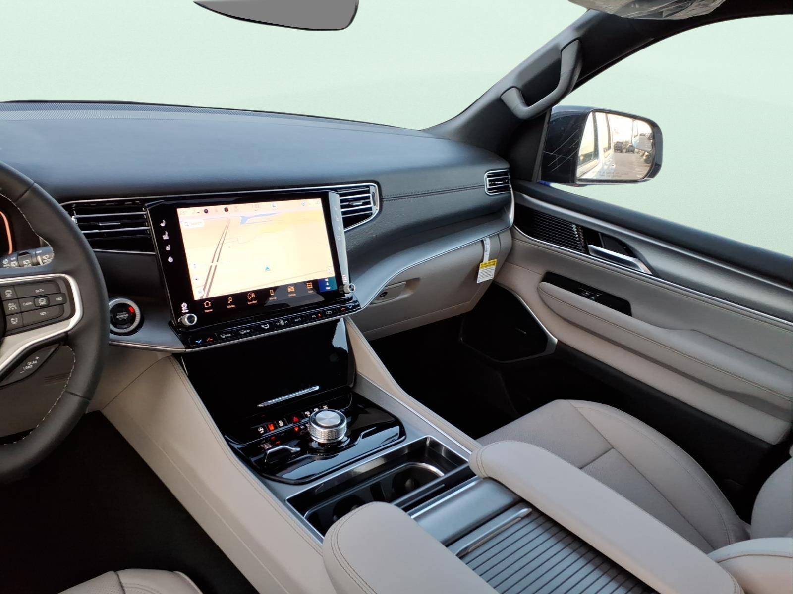 Free Home Delivery within 150 miles! Call Us Now at 423-282-3011! INFORMATION ABOUT THIS VEHICLE AND ITS FEATURES:. 8-Passenger Seating Package (40/20/40 Row Bench Power Tip/Slide, 8-Passenger Seating, and Full Length Floor Console), Premium Group I (3 Panel Sunroof, 3rd Row 60/40 Power Recline Seat, Auto Adjust in Reverse Exterior Mirrors, Auto Power Folding Exterior Mirrors, Auto Power Folding Mirrors, Auto-Dimming Exterior Driver Mirror, Cargo Cover, Exterior Mirrors Approach Lamps, Exterior Mirrors with Memory, Exterior Mirrors with Supplemental Signals, Heated Exterior Mirrors, Interior Rear Facing Camera, Luxury Front and Rear Floor Mats, P and P Park and Unpark Assist with Stop System, Reversible Carpet/Vinyl Cargo Mat, Side Distance Warning, and Surround View Camera System), Quick Order Package 29E Grand Wagoneer, 118 Mph Maximum Speed Calibration, 3.55 Rear Axle Ratio, 3rd row seats: bench, 4-Wheel Disc Brakes, 9 Speakers, ABS brakes, Air Conditioning, Alloy wheels, AM/FM radio: SiriusXM with 360L, Anti-whiplash front head restraints, Apple CarPlay/Android Auto, Audio memory, Auto High-beam Headlights, Auto-dimming door mirrors, Auto-dimming Rear-View mirror, Auto-leveling suspension, Automatic temperature control, Black Exterior Accents, Brake assist, Bumpers: body-color, Compass, Delay-off headlights, Driver door bin, Driver vanity mirror, Drivers Seat Mounted Armrest, Dual front impact airbags, Dual front side impact airbags, Electronic Stability Control, Emergency communication system: Jeep Connect, Exterior Parking Camera Rear, Four wheel independent suspension, Front anti-roll bar, Front Bucket Seats, Front Center Armrest w/Storage, Front dual zone A/C, Front fog lights, Front reading lights, Fully automatic headlights, Garage door transmitter, Heated door mirrors, Heated front seats, Heated steering wheel, Illuminated entry, Knee airbag, Low tire pressure warning, Manufacturer Statement of Origin, Memory seat, MyFlexCare Service Plan, Navigation System, Normal Duty Suspension, Occupant sensing airbag, Outside temperature display, Overhead airbag, Overhead console, Panic alarm, Passenger door bin, Passenger seat mounted armrest, Passenger vanity mirror, Power door mirrors, Power driver seat, Power Liftgate, Power passenger seat, Power steering, Power windows, Radio data system, Radio: Uconnect 5 Nav with 12.0Display, Rain sensing wipers, Rear air conditioning, Rear anti-roll bar, Rear reading lights, Rear seat center armrest, Rear window d
