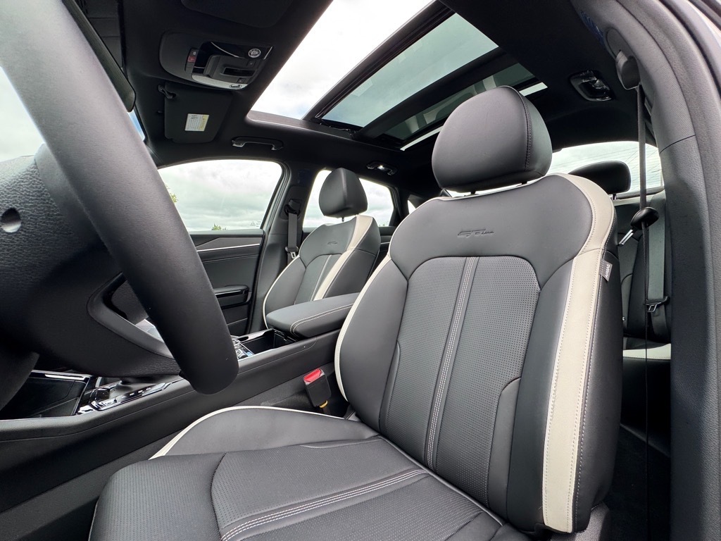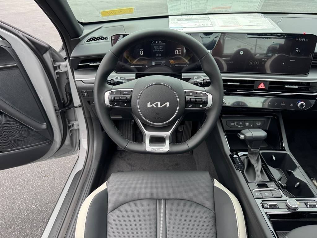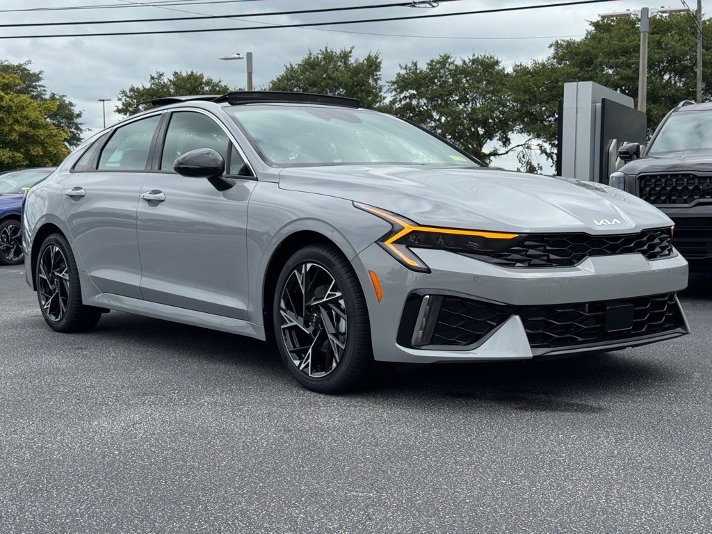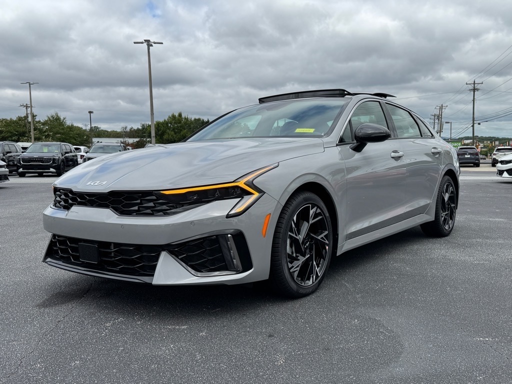 2025 Kia K5 GT-Line Wolf Gray 4-Wheel Disc Brakes, 6 Speakers, ABS brakes, Active Sound Design, Air Conditioning, Alloy wheels, AM/FM radio: SiriusXM, Auto High-beam Headlights, Automatic temperature control, Bose Premium Audio, Brake assist, Bumpers: body-color, Cargo Mat, Cargo Tray, Carpeted Floor Mats, Delay-off headlights, Driver door bin, Driver vanity mirror, Dual front impact airbags, Dual front side impact airbags, Electronic Stability Control, Emergency communication system: Kia Connect (includes 1 year free trial), Four wheel independent suspension, Front anti-roll bar, Front Bucket Seats, Front Center Armrest, Front dual zone A/C, Front fog lights, Front reading lights, Fully automatic headlights, GT-Line Premium Package, Heated door mirrors, Heated Front Bucket Seats, Heated front seats, Heated steering wheel, Illuminated entry, Knee airbag, Leather Shift Knob, Leather steering wheel, LED Interior Lighting, Low tire pressure warning, Navigation System, Occupant sensing airbag, Outside temperature display, Overhead airbag, Overhead console, Panic alarm, Panoramic Sunroof, Passenger door bin, Passenger vanity mirror, Power door mirrors, Power driver seat, Power steering, Power windows, Radio data system, Radio: AM/FM Audio System, Rear anti-roll bar, Rear seat center armrest, Rear side impact airbag, Rear window defroster, Remote keyless entry, Security system, Speed control, Speed-sensing steering, Split folding rear seat, Sport steering wheel, Steering wheel mounted audio controls, Tachometer, Telescoping steering wheel, Tilt steering wheel, Traction control, Trip computer, Turn signal indicator mirrors, Variably intermittent wipers, Wheels: 18x 7.5J Gloss Black Machined Finish Alloy. 4D Sedan FWD 8-Speed Automatic I4 25/36 City/Highway MPG 25/36 City/Highway MPG Thank you for checking out our website at www.KiaOfGreenville.com where we help you find the best vehicle that meets your needs wrapped in a deal you will not want to walk away from. If you ha