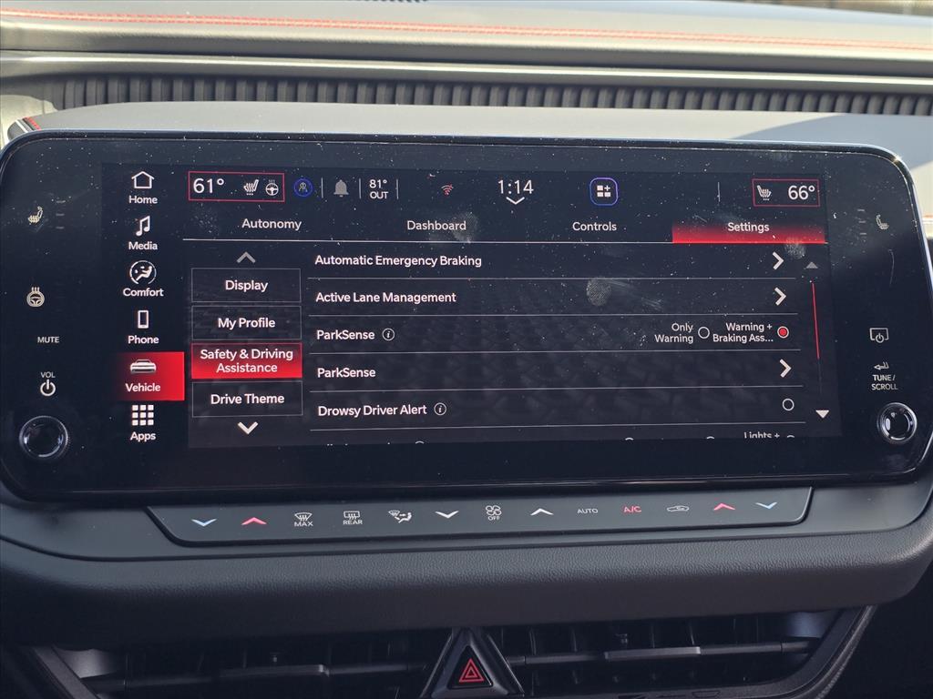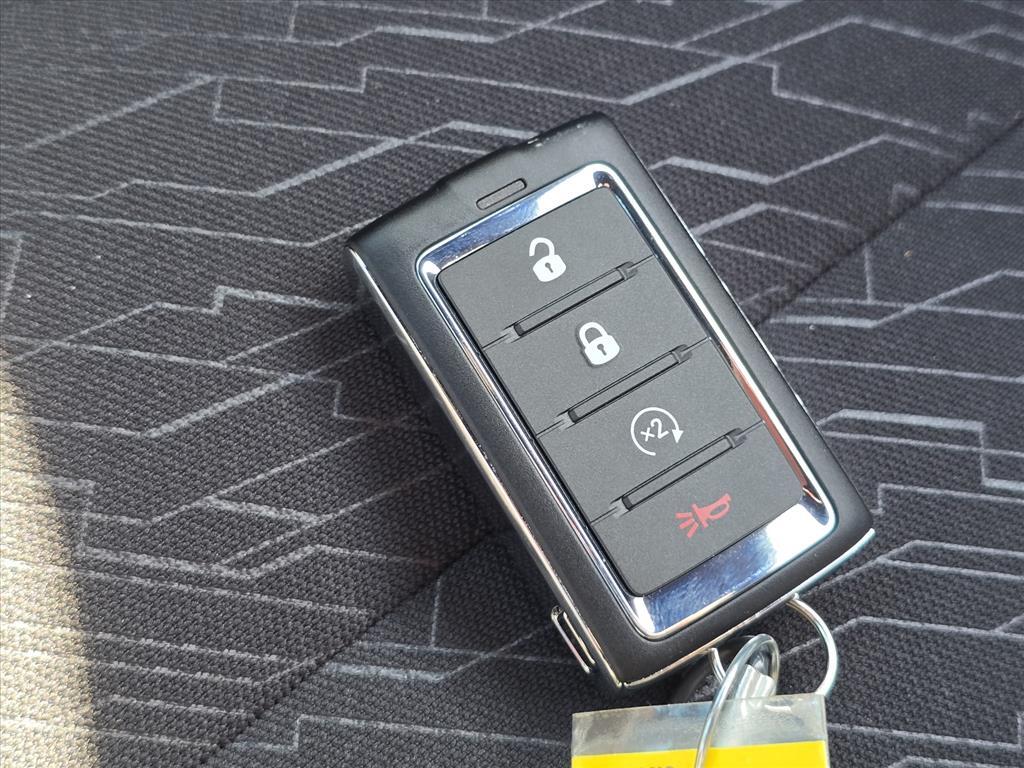 Dual front airbags, front seat mounted side-impact airbags, dual head curtain side-impact airbags, driver inflatable knee airbag, four-wheel Brembo six-piston ultra-high performance brakes with anti-lock, brake assist, brake override, rain brake support, ready alert braking, electronic stability control, all-speed traction control, hill-start assist, automatic bi-function high intensity discharge projector lamps, LED daytime running lamps, Bluetooth hands-free phone system, tip-start push button, blind-spot monitoring system, speed-sensitive power door locks, Keyless Enter ‘n Go, intelligent battery sensor, ParkSense rear park assist, ParkView rear backup camera, rear cross path detection, remote keyless entry, remote engine start, engine immobilizer, alarm system, universal garage door opener, tire sealant and electric compressor, and tire pressure monitoring system.