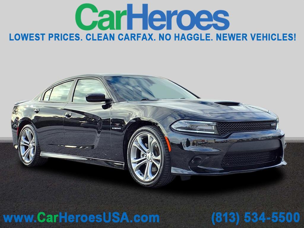 CERTIFIED 90 DAYS / 3,000 MILES NATIONWIDE LIMITED WARRANTY ON EVERY VEHICLE! 4.9 OUT OF 5 STARS! 3,500 GOOGLE REVIEWS! THE HIGHEST RATED DEALER IN FLORIDA! CARHEROES = LOWEST PRICES. LARGEST SELECTION. NO HAGGLE. DRIVE HAPPY! CARFAX One-Owner. Clean CARFAX. Odometer is 24961 miles below market average! Recent Arrival! 2021 Dodge Charger R/T RWD 4D Sedan HEMI 5.7L V8 Multi Displacement VVT 8-Speed Automatic Pitch Black Clearcoat Black Cloth.