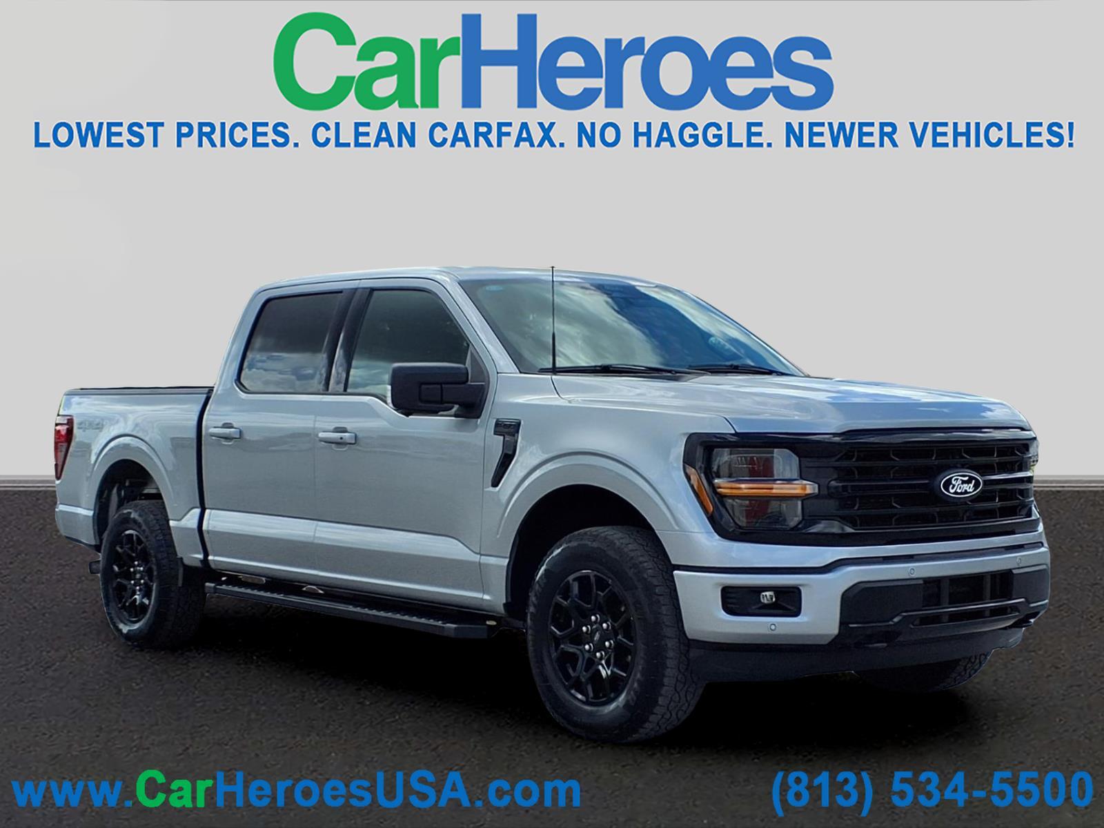 XLT BLACK APPEARANCE PACKAGE! EQUIPMENT GROUP 302A HIGH LUXURY! CERTIFIED 90 DAYS / 3,000 MILES NATIONWIDE LIMITED WARRANTY ON EVERY QUALIFIED VEHICLE! 4.9 OUT OF 5 STARS! 4,200 GOOGLE REVIEWS! THE HIGHEST RATED DEALER IN FLORIDA! CARHEROES = LOWEST PRICES. LARGEST SELECTION. NO HAGGLE. DRIVE HAPPY! **To receive the lower advertised price or Preferred Payment discounted price, the vehicle must be purchased using one of the following preferred payment methods: Capital One Auto Navigator pre approval, or Financing through the dealership with an Approved lender. **YOU MAY CONTACT THE DEALERSHIP FOR A LIST OF APPROVED LENDERS**. A list of approved lenders may be requested by email or talk to a sales representative. If buyer is purchasing the vehicle using any other payment method CarHeroes price (see carheroesusa.com/inventory) will apply. **All prices advertised on any Credit union or third party lenders buying service or third party website are Preferred Payment discounted prices. Customer may choose to receive the Preferred Payment discounted price if they pay for the vehicle with a preferred payment method.** Recent Arrival! 2024 Ford F-150 XLT 4WD 4D SuperCrew 2.7L V6 EcoBoost 10-Speed Automatic Iconic Silver Metallic 4WD, 400W Cab & Bed Outlets, 6Black Running Boards, Adaptive Cruise Control w/Stop & Go, Auto-Dimming Rear-View Mirror, Black Exterior Badging, Black Grille, Body-Color Front & Rear Bumpers, Cloth 40/Console/40 Front Seats, Dark Interior Appliques, Equipment Group 302A Mid, Floor Shifter, Ford BlueCruise Equipped (90-Day Trial), Gray Box Side Decal, Heated Front Seats, Intelligent Access w/Push Button Start, Power Glass Heated Sideview Mirrors, Power-Sliding Rear Window, Remote Start System w/Remote Tailgate Release, Speed Sign Recognition, Unique Sport Cloth 40/Console/40 Front-Seats, Wheels: 18Gloss Black, XLT Black Appearance Package.